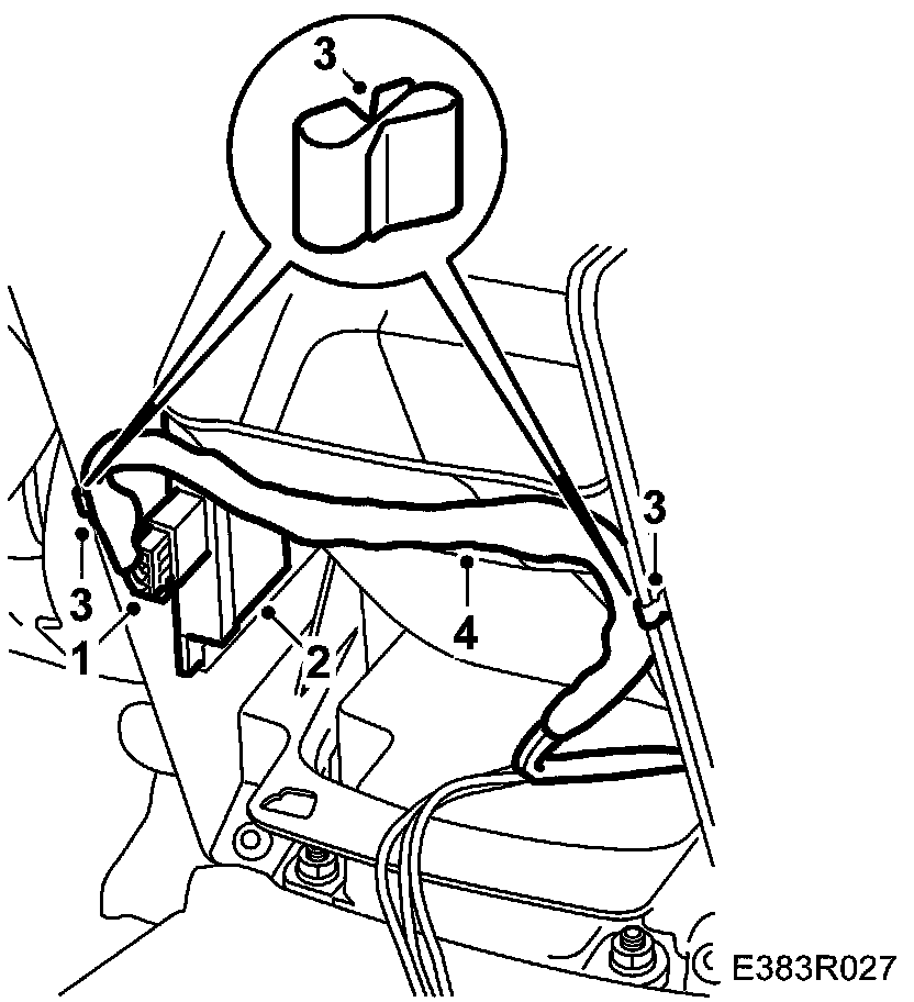 NOTE: If necessary, the tape around the wiring harness must be removed enough to move the wiring harness branching sufficiently to fix the wiring harness correctly. The wiring harness must also be adapted so that the rear portion of the floor console can be fitted without moving the harness from the clips. Affix new tape around the wiring harness.