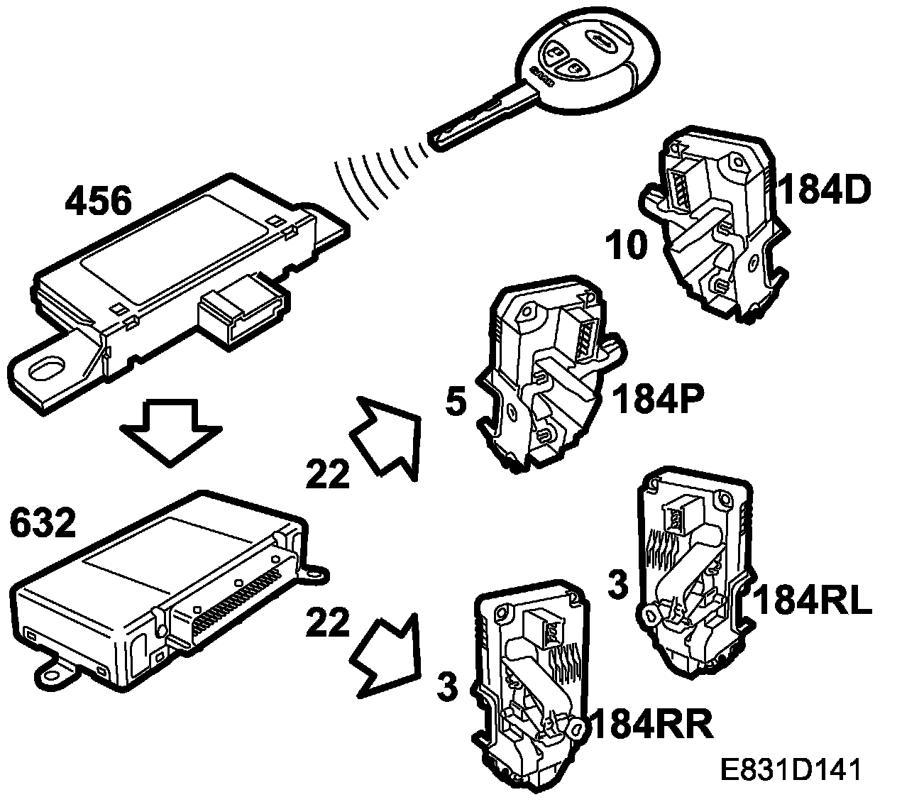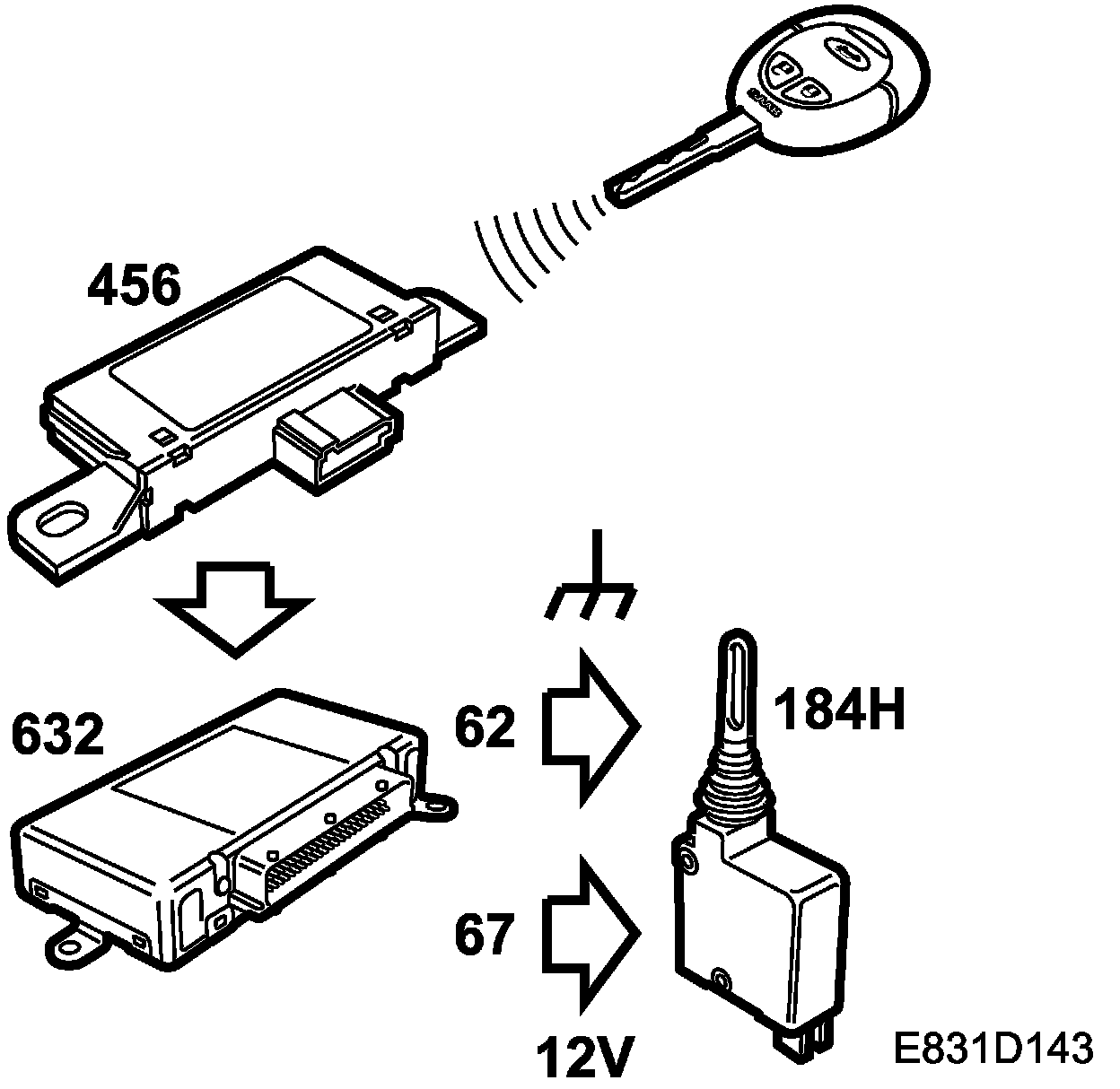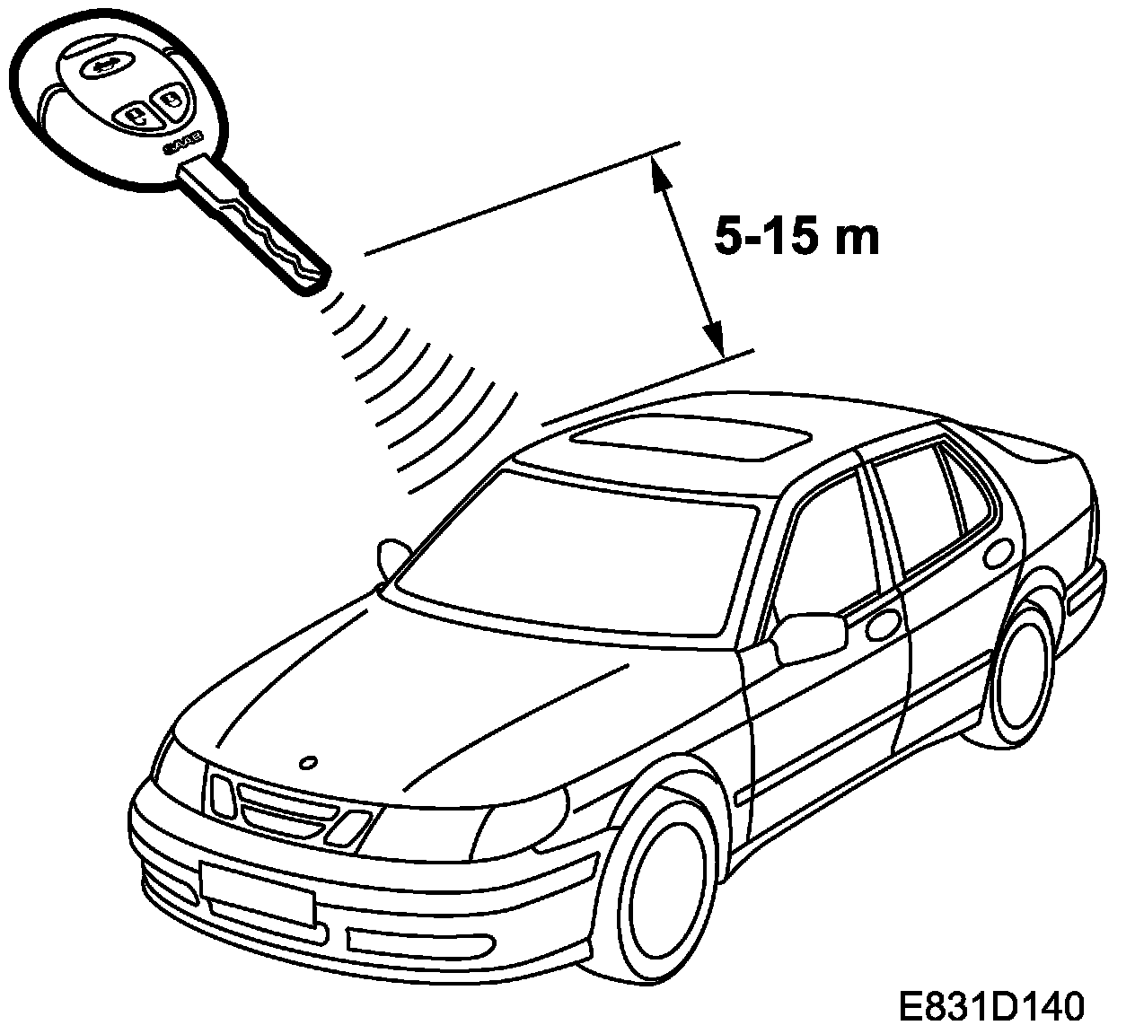 The signal from the remote control contains a unique identification code. It is a so called "rolling code" that changes each time a button is pressed. If the code is correct, the control module carries out the command. To lock the car, the remote control transmits codes continuously as long as the button is depressed. To unlock the car, the remote control transmits only one code when the button is pressed. This means that if the receiver does not register the code immediately, the unlock button must be pressed again.