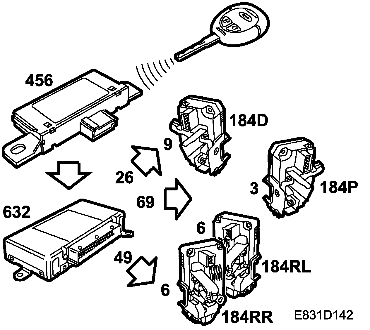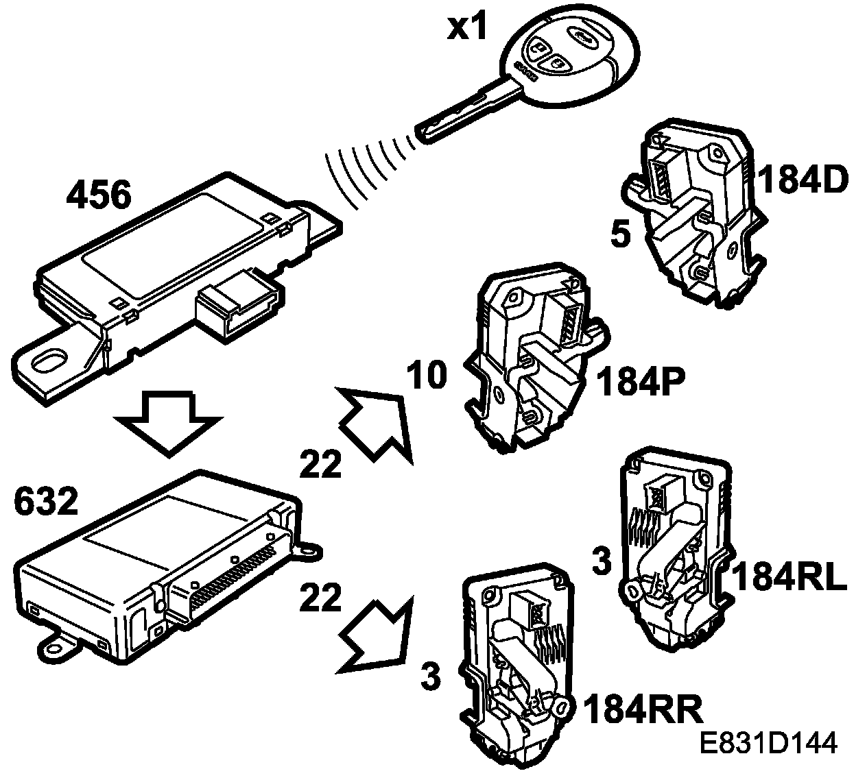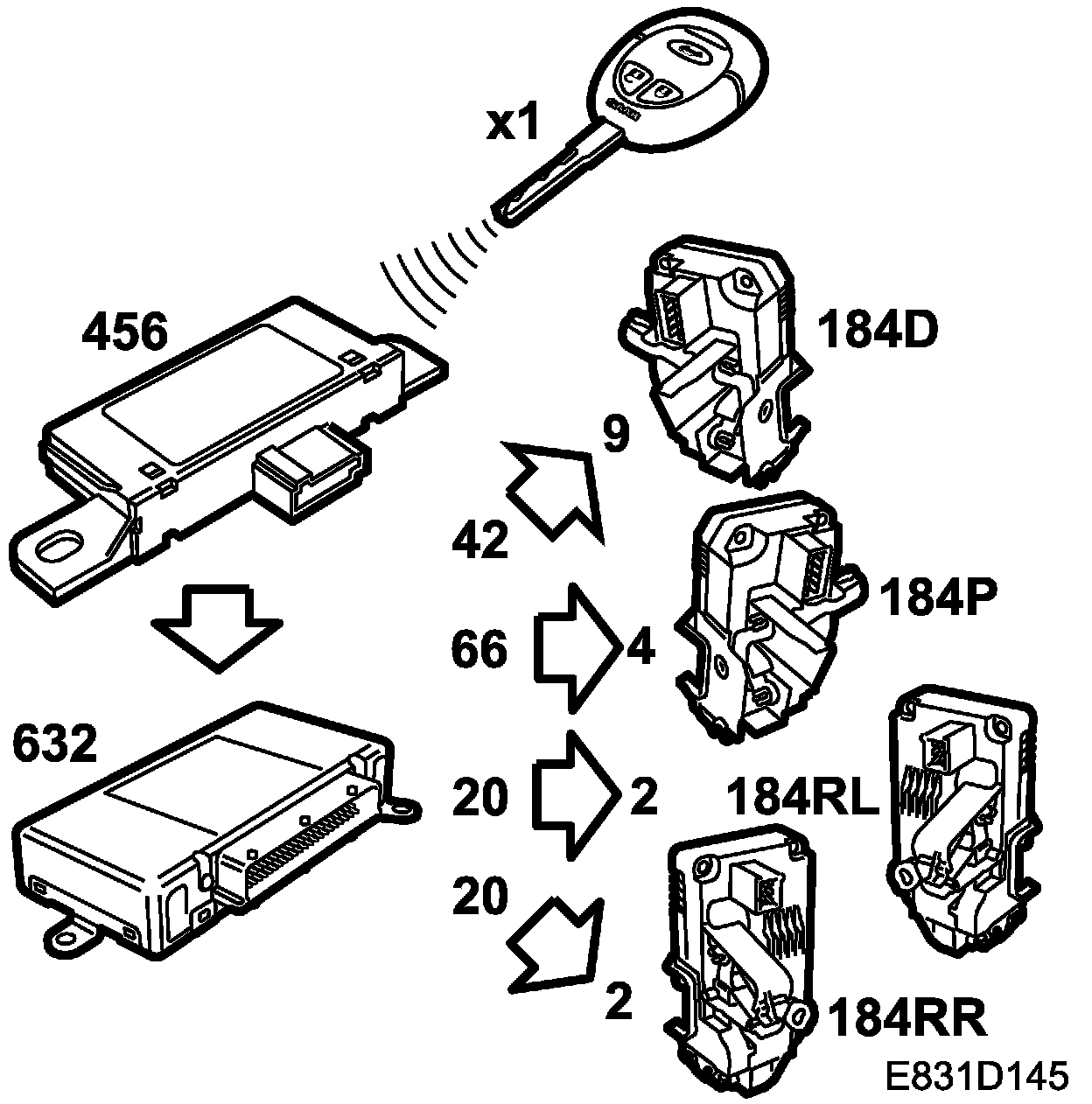 The signal from the remote control contains a unique identification code. It is a so called "rolling code" that changes each time a button is pressed. If the code is correct, the control module carries out the command. To lock the car, the remote control transmits codes continuously as long as the button is depressed. To unlock the car, the remote control transmits only one code when the button is pressed. This means that if the receiver does not register the code immediately, the unlock button must be pressed again.