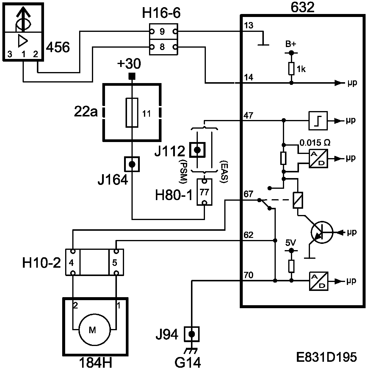 A short voltage pulse (0.8 sec.) is output from pin 22 on the TWICE control module to the doors' electric motors, which locks the car.
