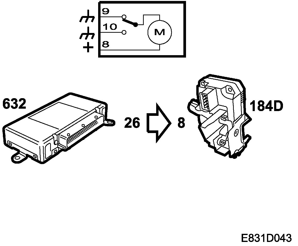 A short voltage pulse (0.8 sec.) is output from pin 26 on the TWICE control module to the driver's door electric motor, which unlocks the door.
