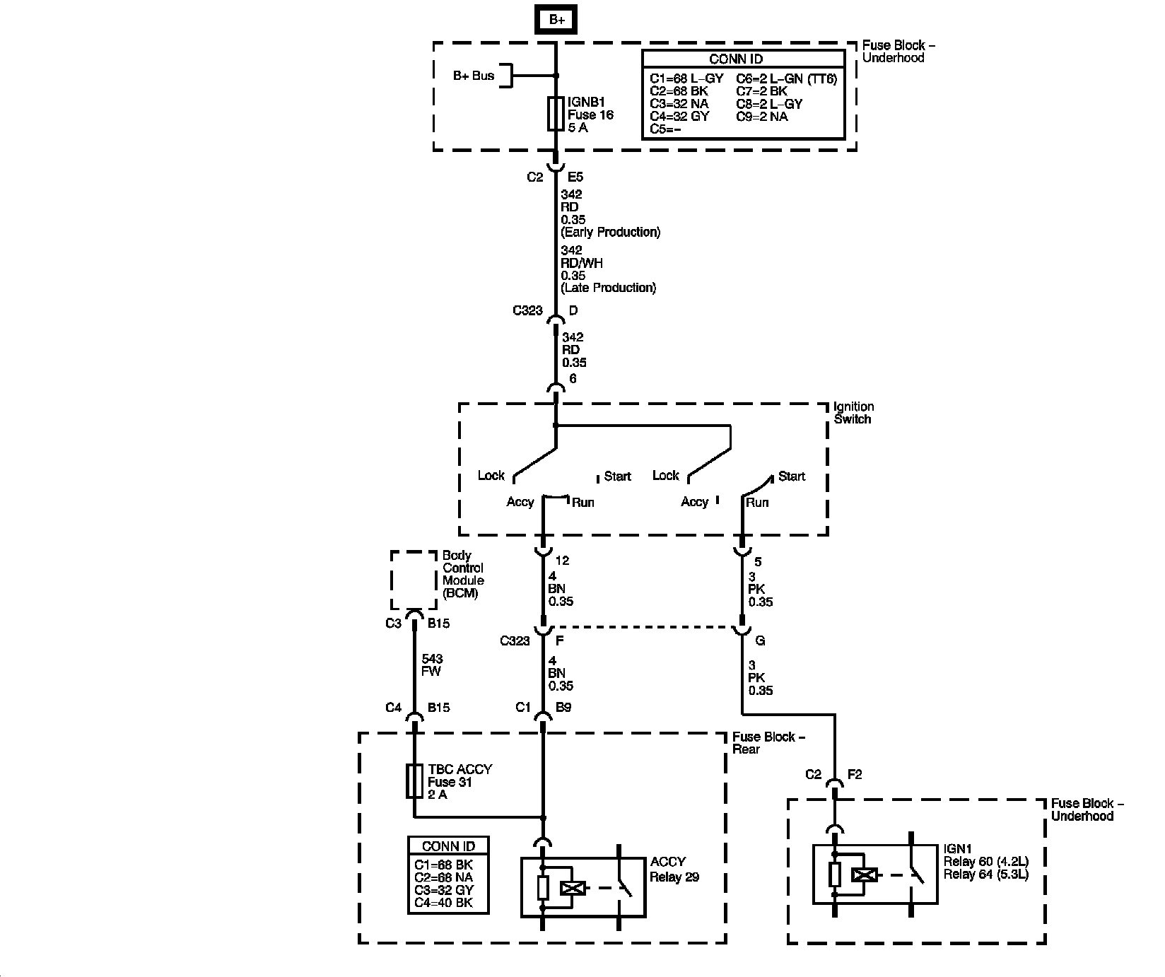 Ignition Switch - ACCY/RUN, RUN/START Bus Bars, and IGNB1 Fuse