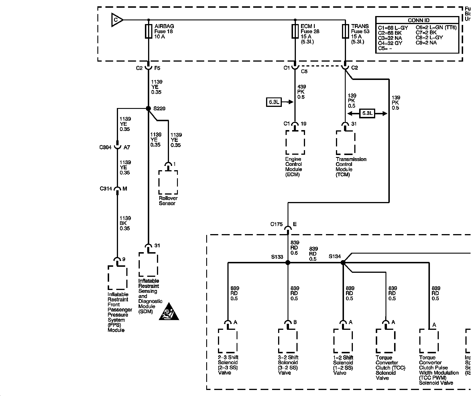 AIRBAG, ECM I, and TRANS Fuses