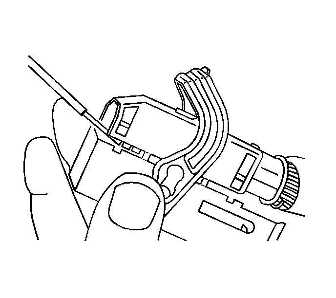 11. Insert the J 38125-560 (GM P/N 15314260) into the 2 triangular cavities on each side of the terminal at the front of the connector. See the release tool cross reference in the Reference Guide of theJ-38125 to ensure that the correct release tool is used.