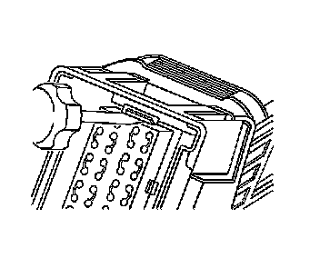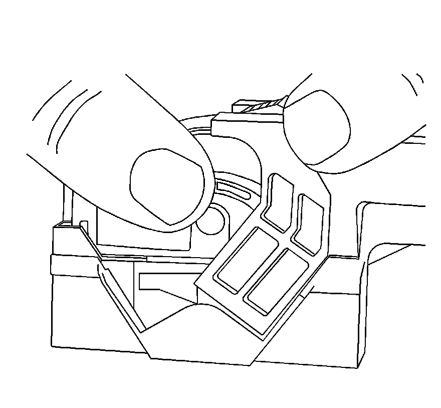 3. Locate the dress cover locking tabs at the front of the connector. Using a small flat-blade tool push down on one of the locking tabs and pull the cover up until the dress cover releases. Repeat this procedure for the other locking tab.
