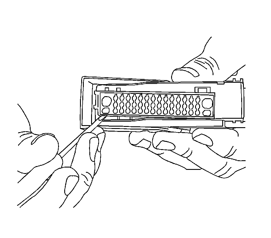 For the larger terminals insert the J 38125-556 (GM P/N 12093647) tool to release the terminals by inserting the tool into the terminal release cavity. For the smaller terminals insert the J 38125-560 (GM P/N 15314260) tool to release the terminals by inserting the tool into the terminal release cavity. See the release tool cross reference in the Reference Guide of theJ-38125 to ensure that the correct release tool is used.
