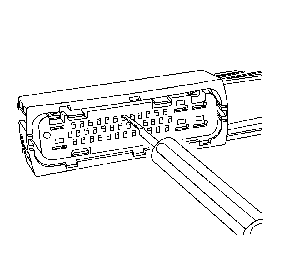 6. For the larger terminals insert the J 38125-13A (GM P/N 12031876-1) tool to release the terminals by inserting the tool into the terminal release cavity. For the smaller terminals insert the J 38125-12A (GM P/N 12094429) tool to release the terminals by inserting the tool into the terminal release cavity. See the release tool cross reference in the Reference Guide of theJ-38125 to ensure that the correct release tool is used.