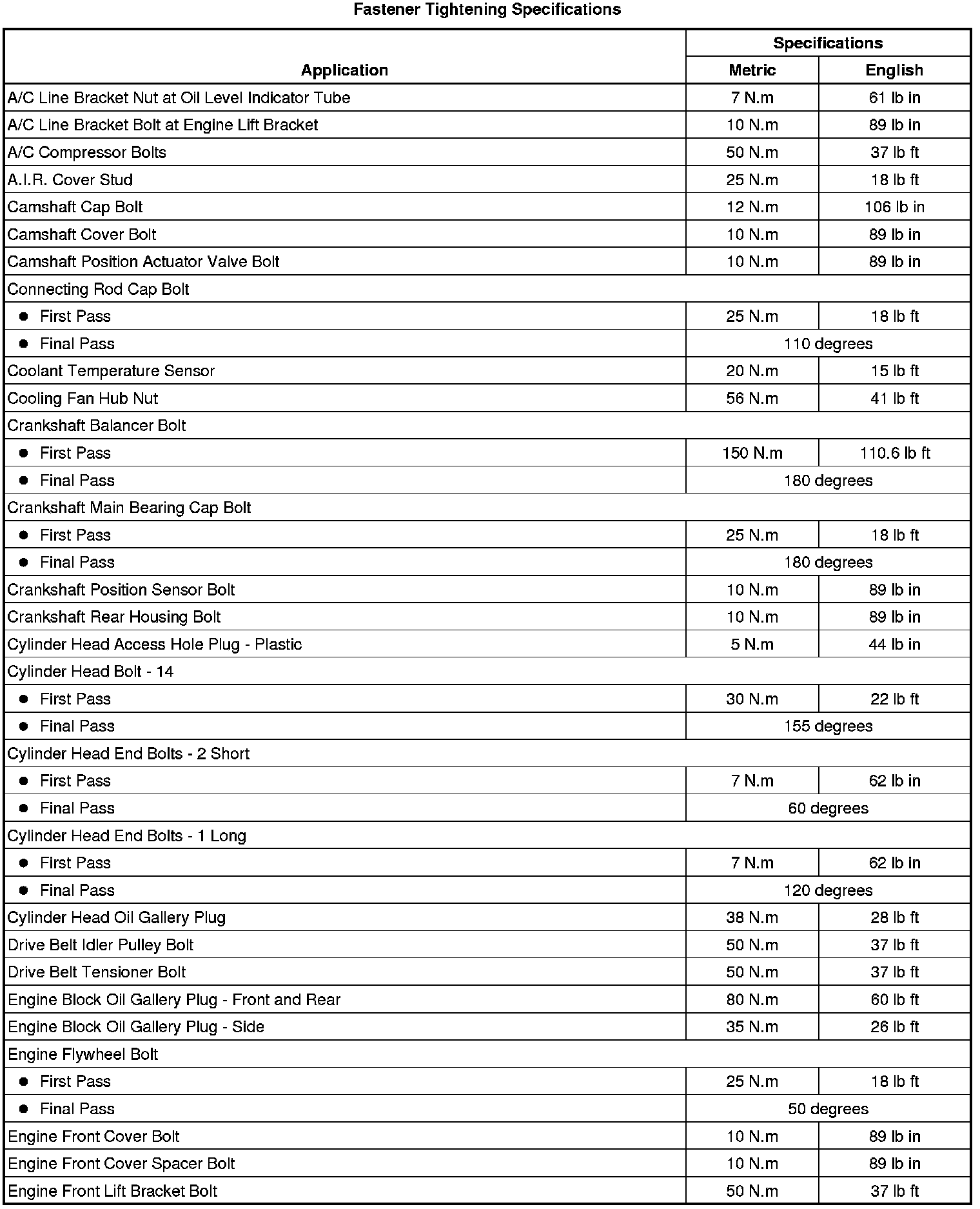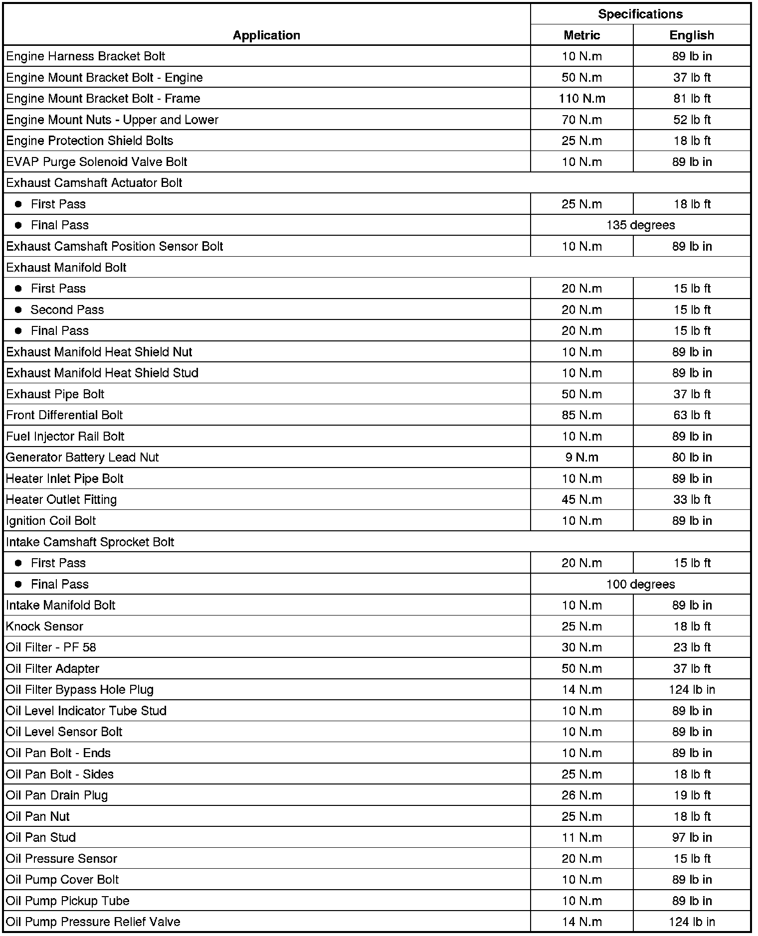 Torque Specifications