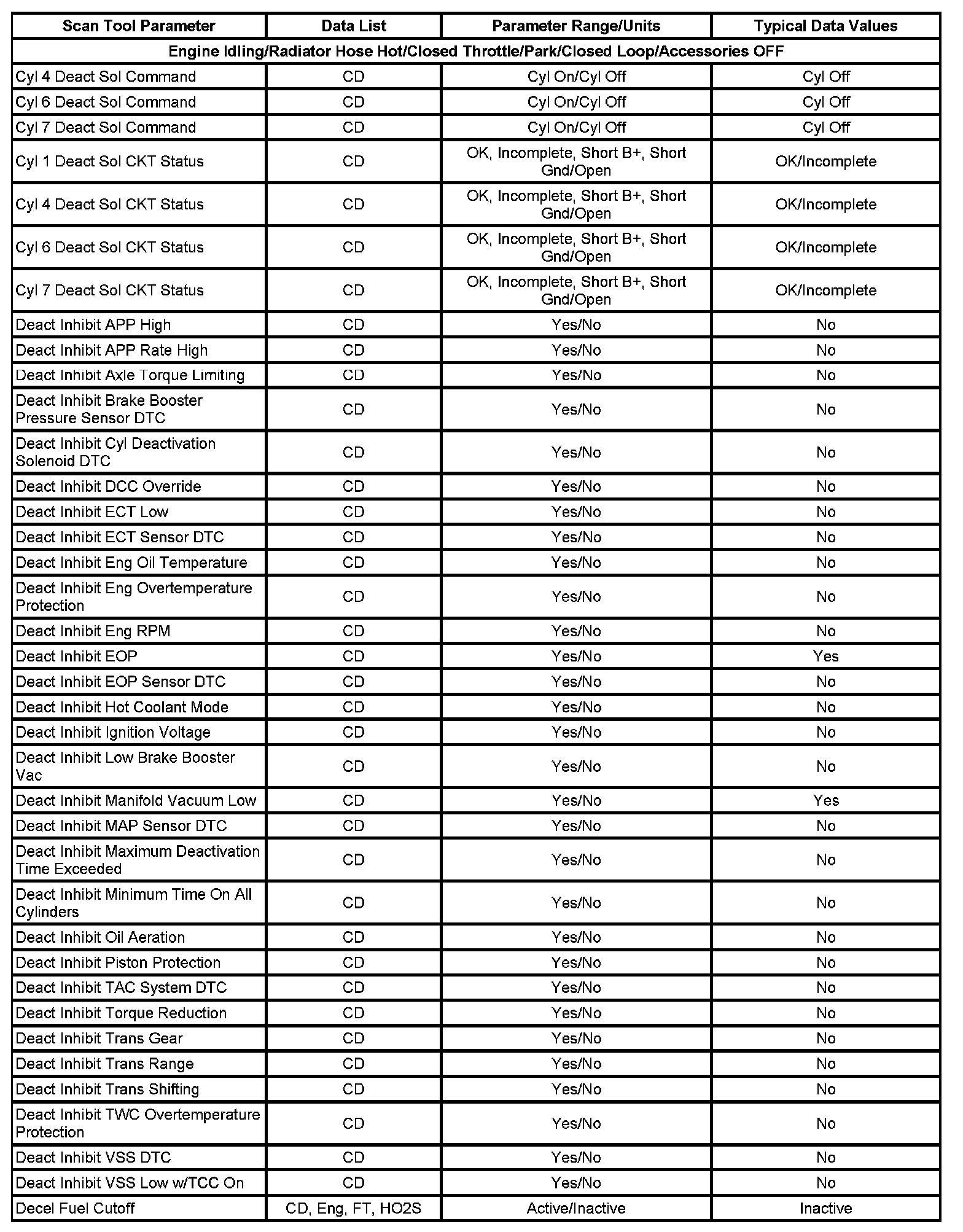 The Engine Scan Tool Data List contains all engine related parameters that are available on the scan tool. The list is arranged in alphabetical order. A given parameter may appear in any one of the data lists, and in some cases may appear more than once, or in more than one data list in order to group certain related parameters together.