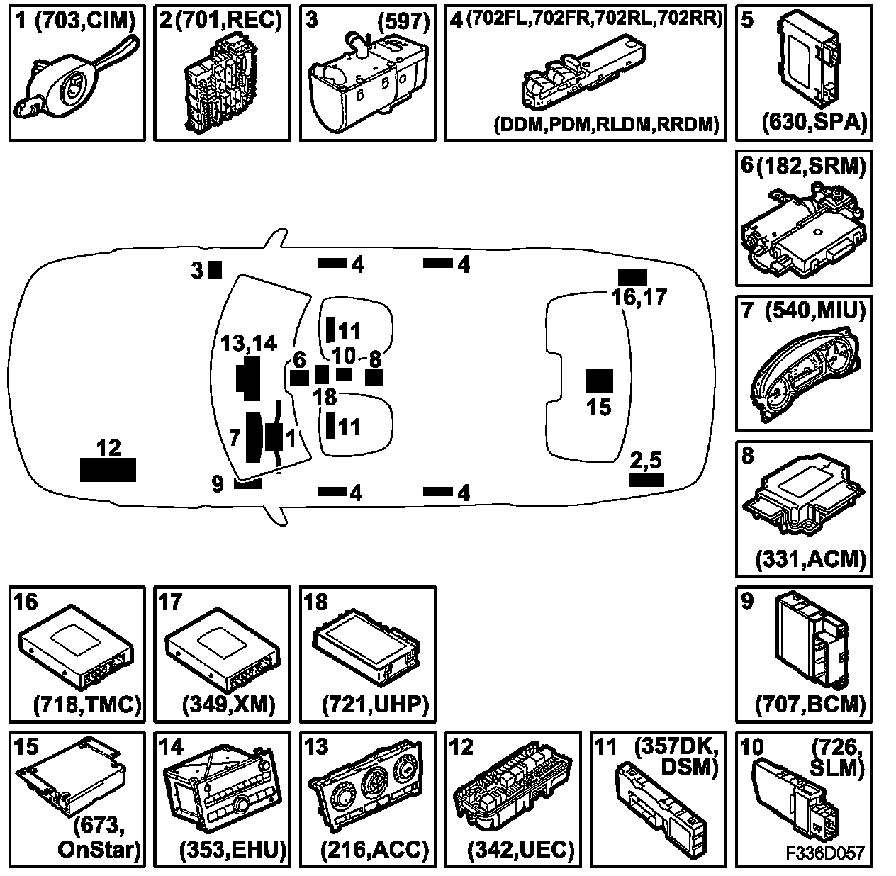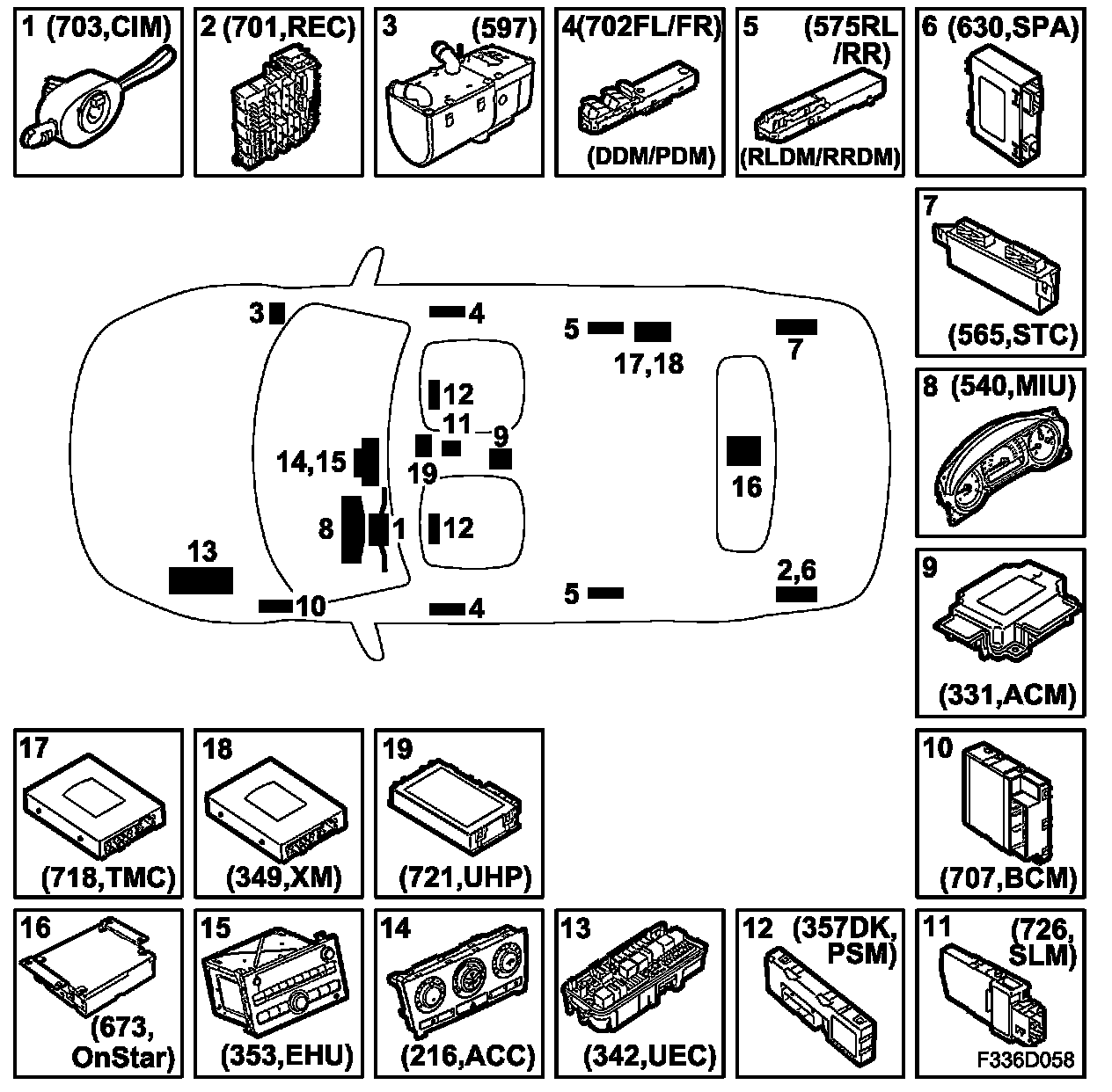 9. Control module BCM (707) is located in the instrument panel electrical center.
