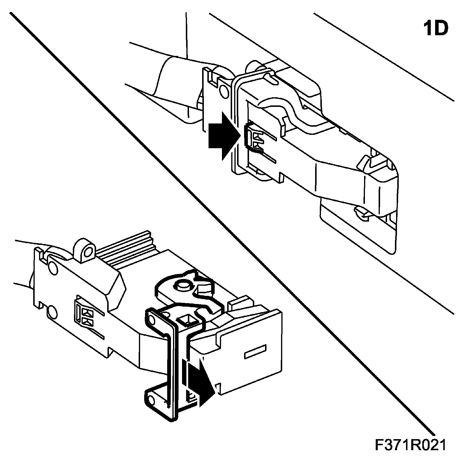 1. F. Press in the connector lock tab to release the brace. Release the connector slide while pushing the brace forward.