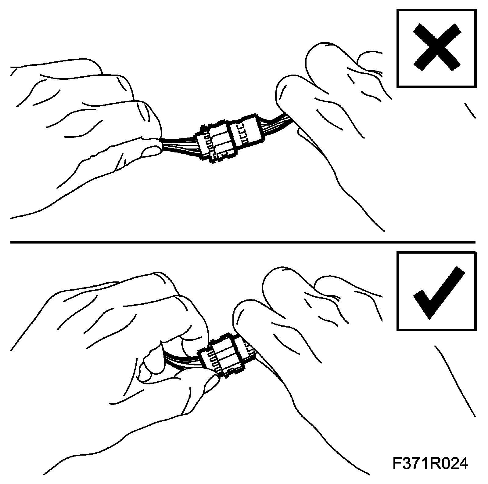 3. Never pull the wiring harness when removing a connector.