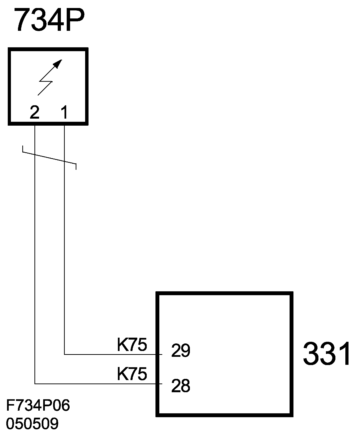 On activation, the passenger's side activation unit (734P) is supplied with B+ from the airbag control module pin 29. The activation unit (734D) is grounded from control module pin 28.