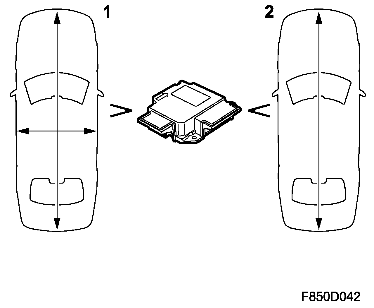 The control module contains two accelerometers. The primary accelerometer (1) measures acceleration and deceleration forces longitudinally and laterally. The secondary (1) accelerometer measures longitudinal acceleration and deceleration forces only.