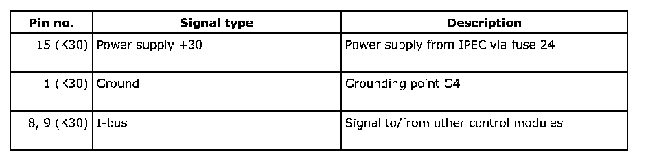 The control module is equipped with a built-in backup power source which provides voltage for 150 ms after the normal power supply has been disconnected.