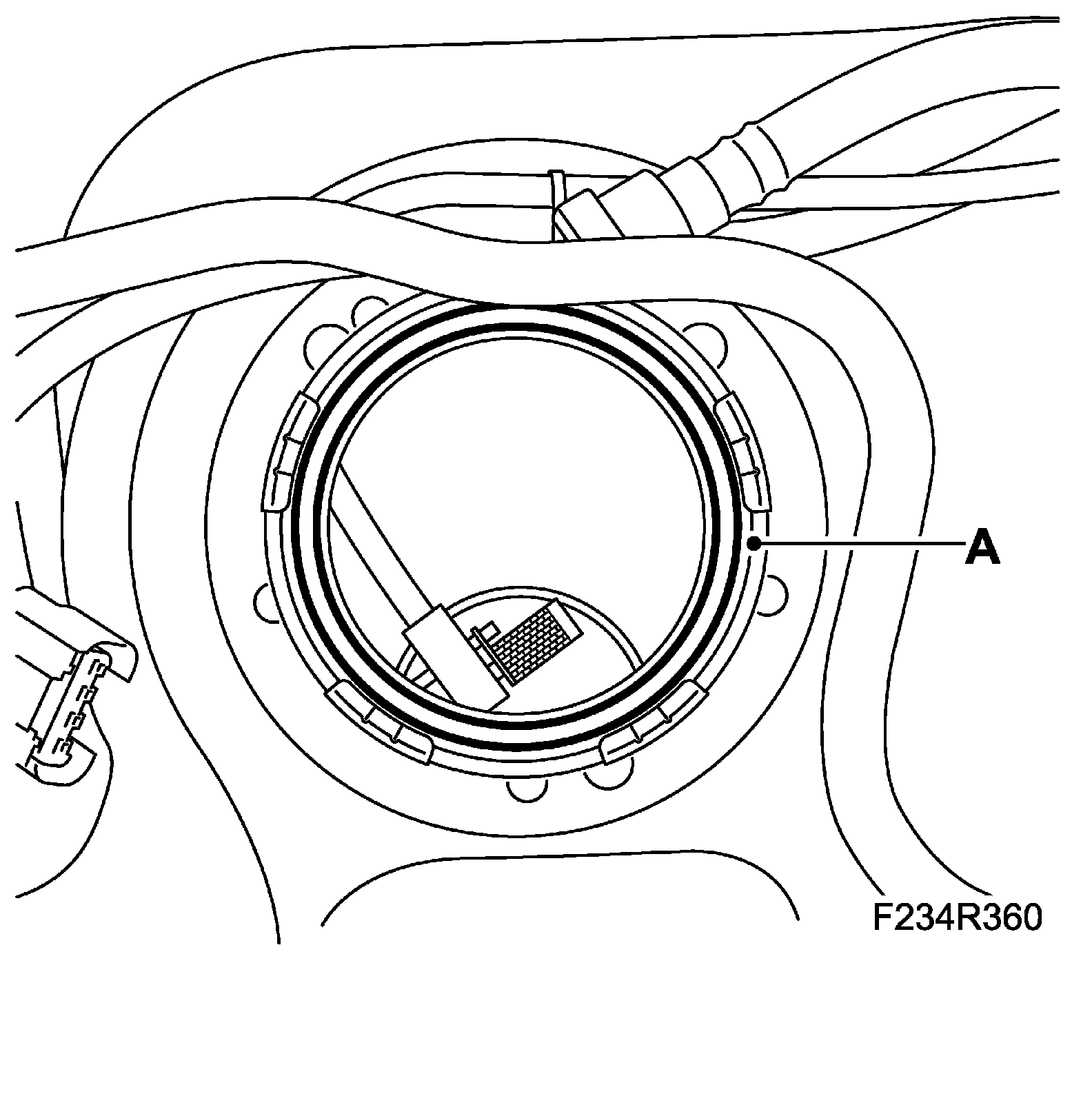 5. Plug in the fuel level sensor connector (A) and fit the quick coupling (C) to the carbon canister.