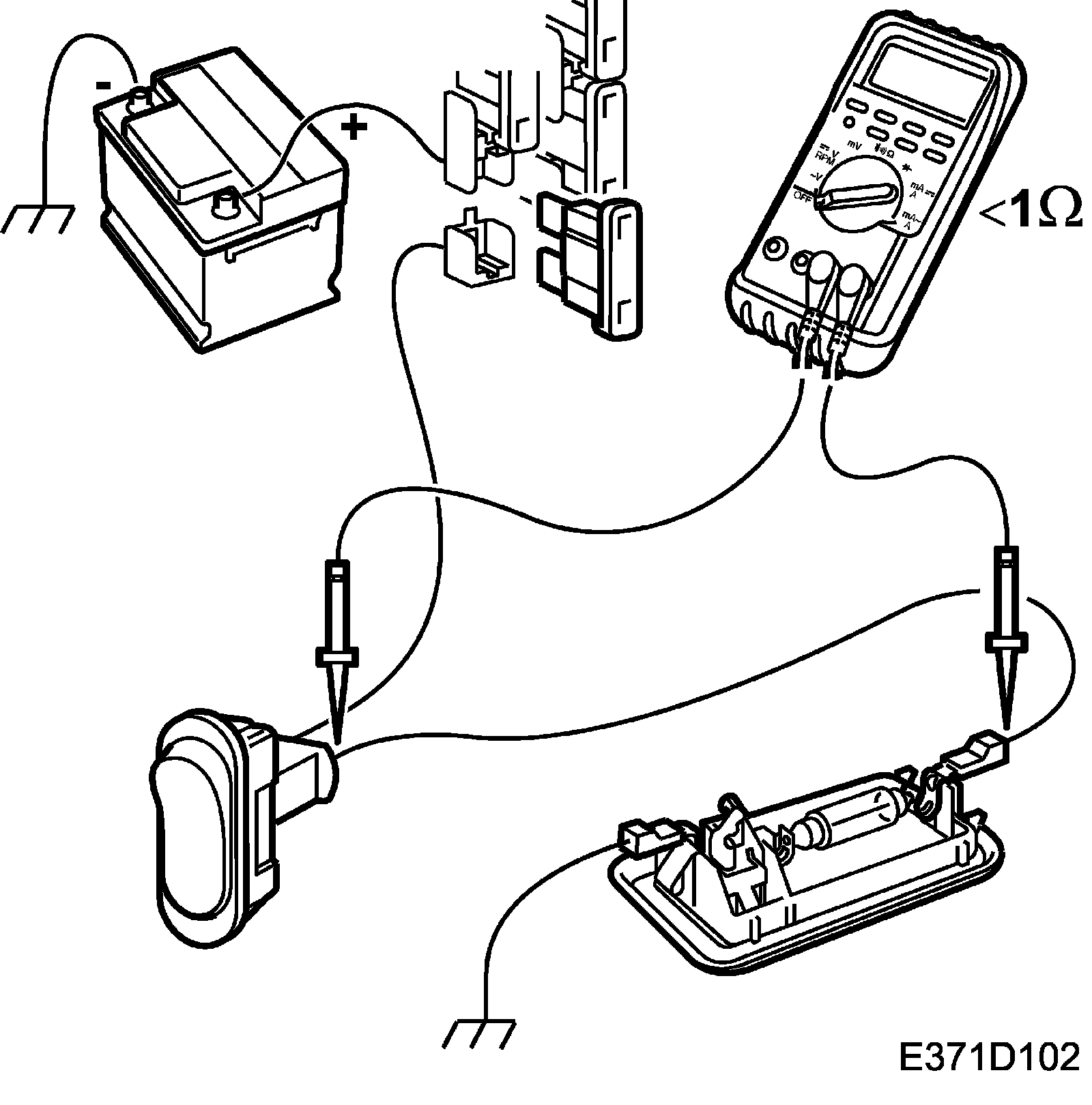 4. Carefully jiggle the wiring harness and check that the multimeter shows a constant infinite value (OL).
