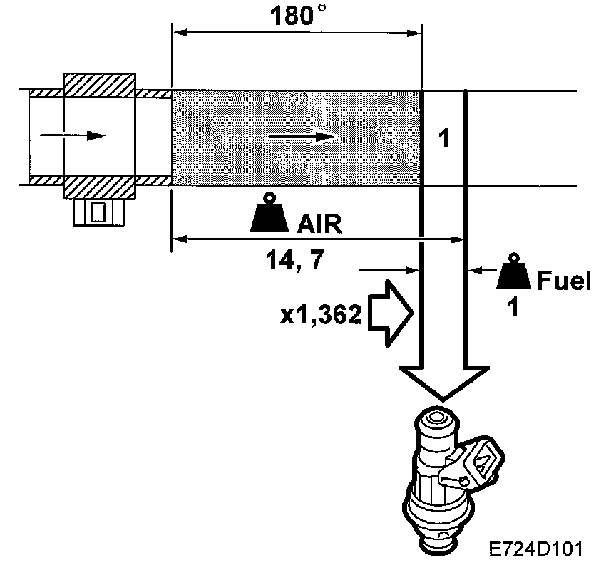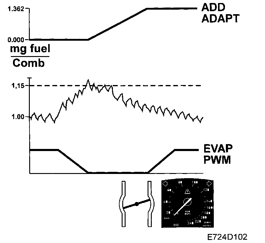The amount of fuel is added or subtracted until the closed loop value oscillates around 1.00 (0%). The reason that additive adaptation is necessary is because air leakage when idling leads to a major fault, which cannot be adapted multiplicatively since the amount of fuel would then be too great as soon as the load is increased.