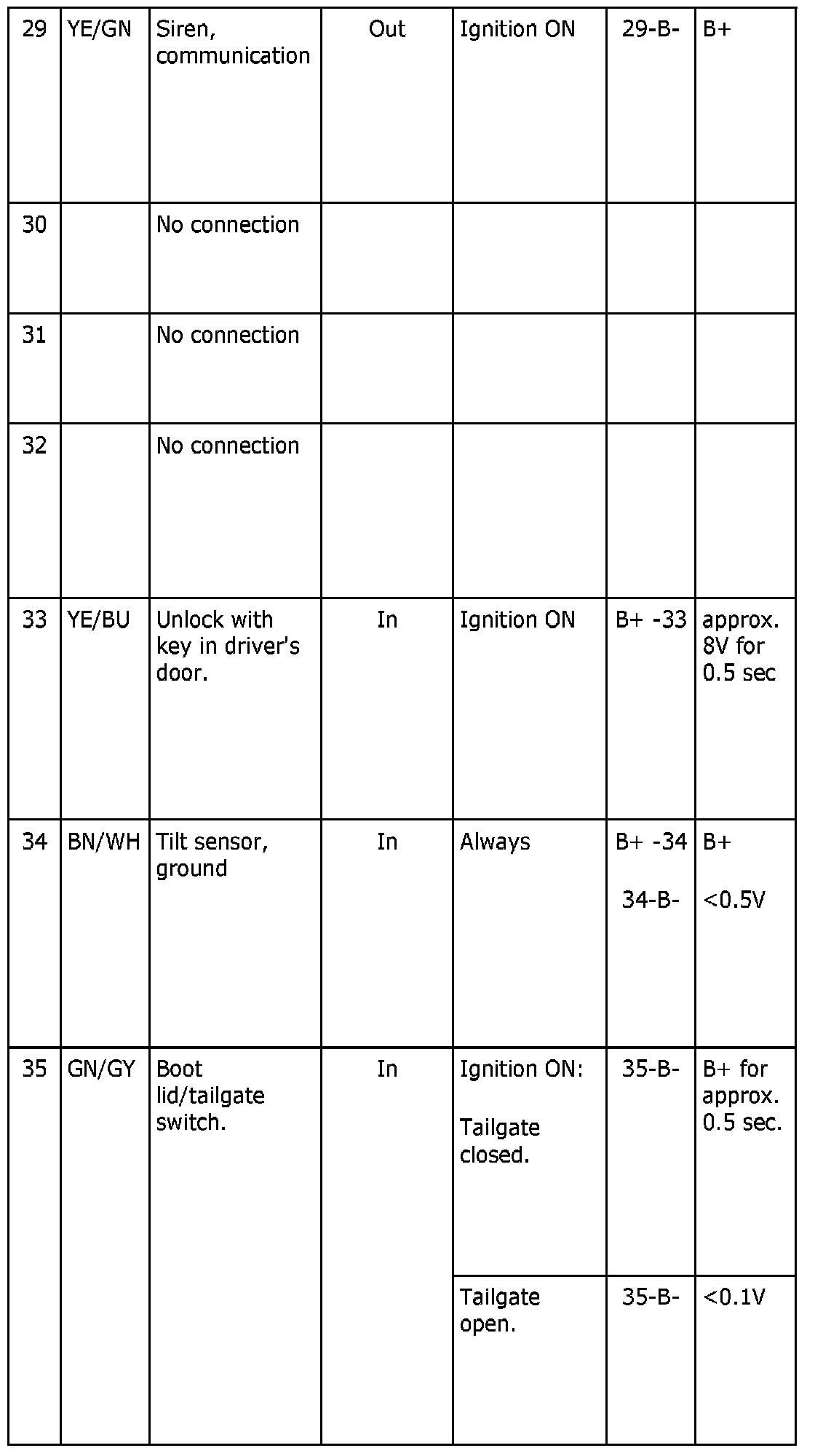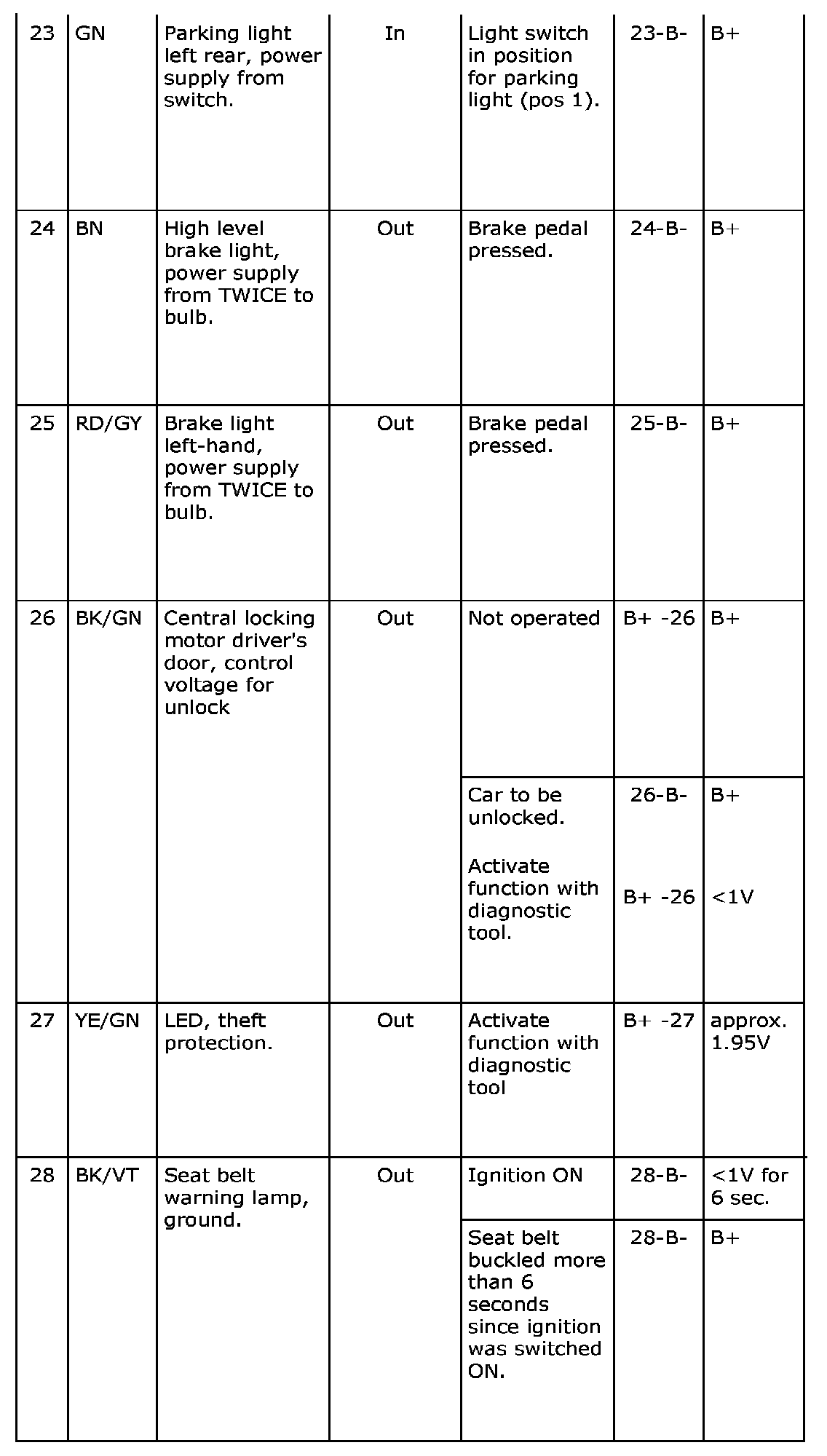 ^ The nominal values specified apply with the ignition in the ON position unless otherwise stated.