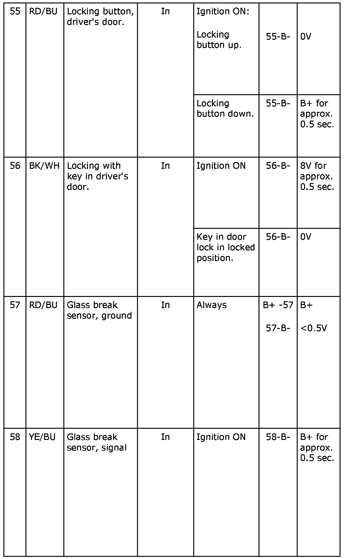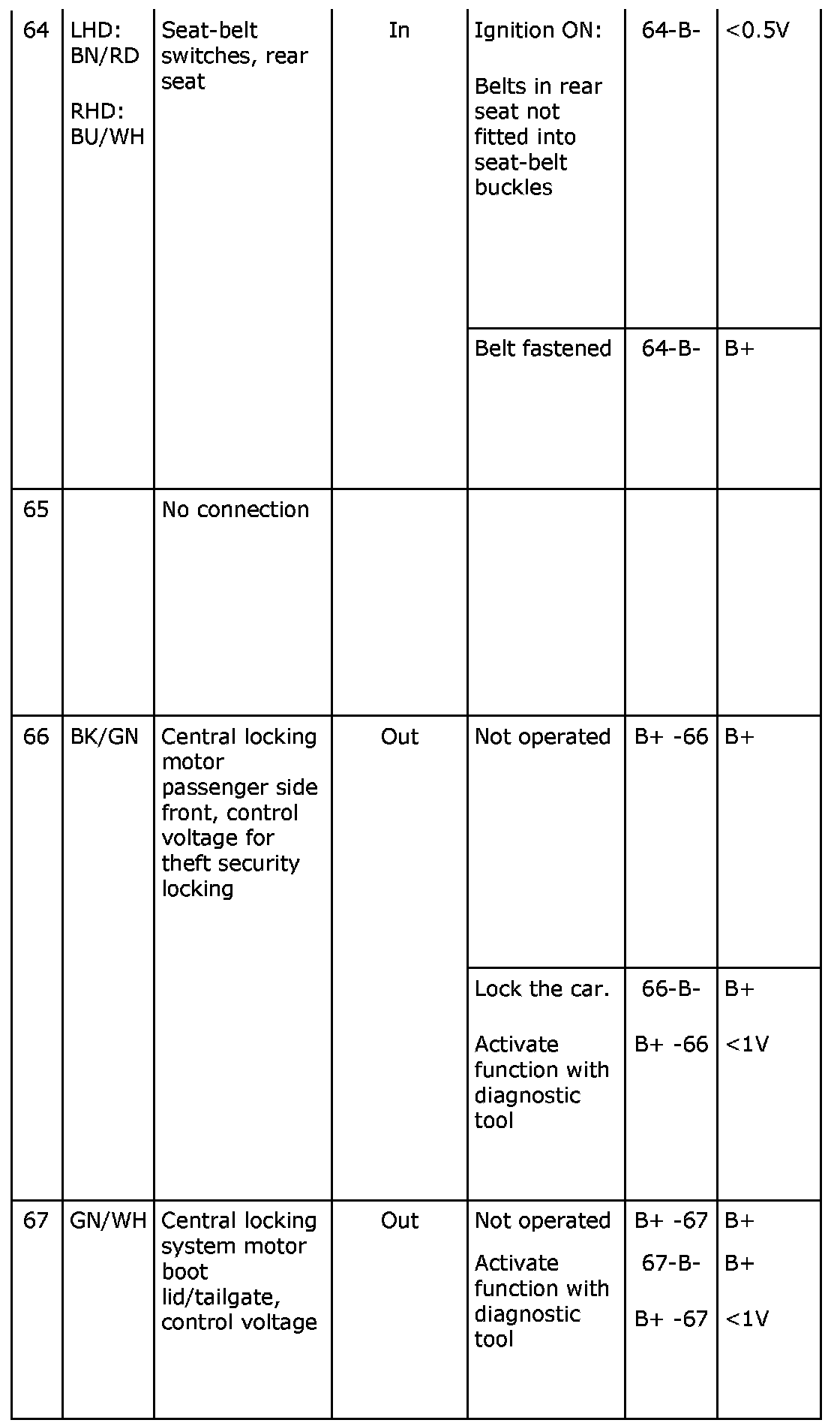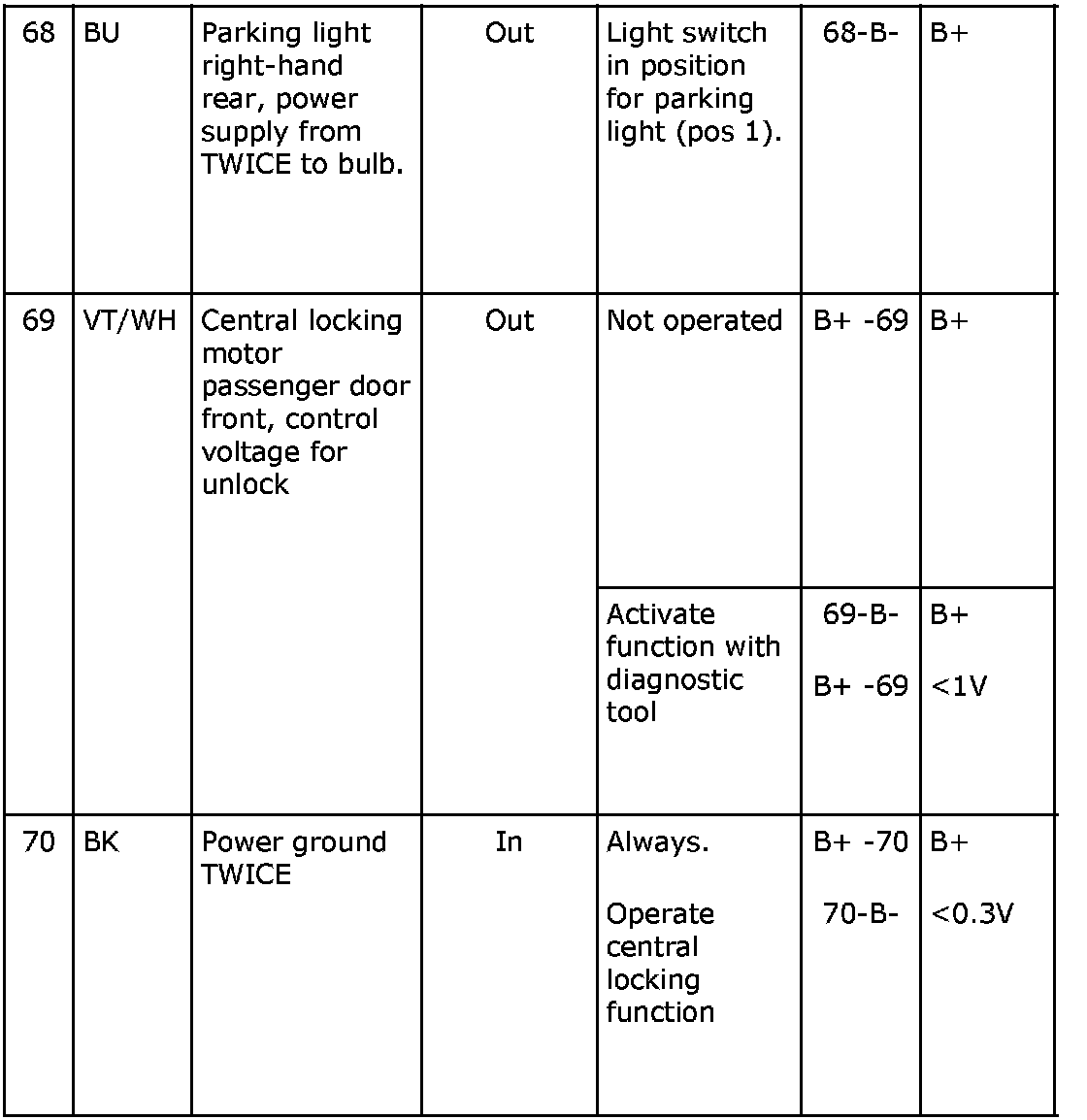 ^ If any reading is not OK, consult the wiring diagram to trace the leads, connectors or components which should be checked more thoroughly.