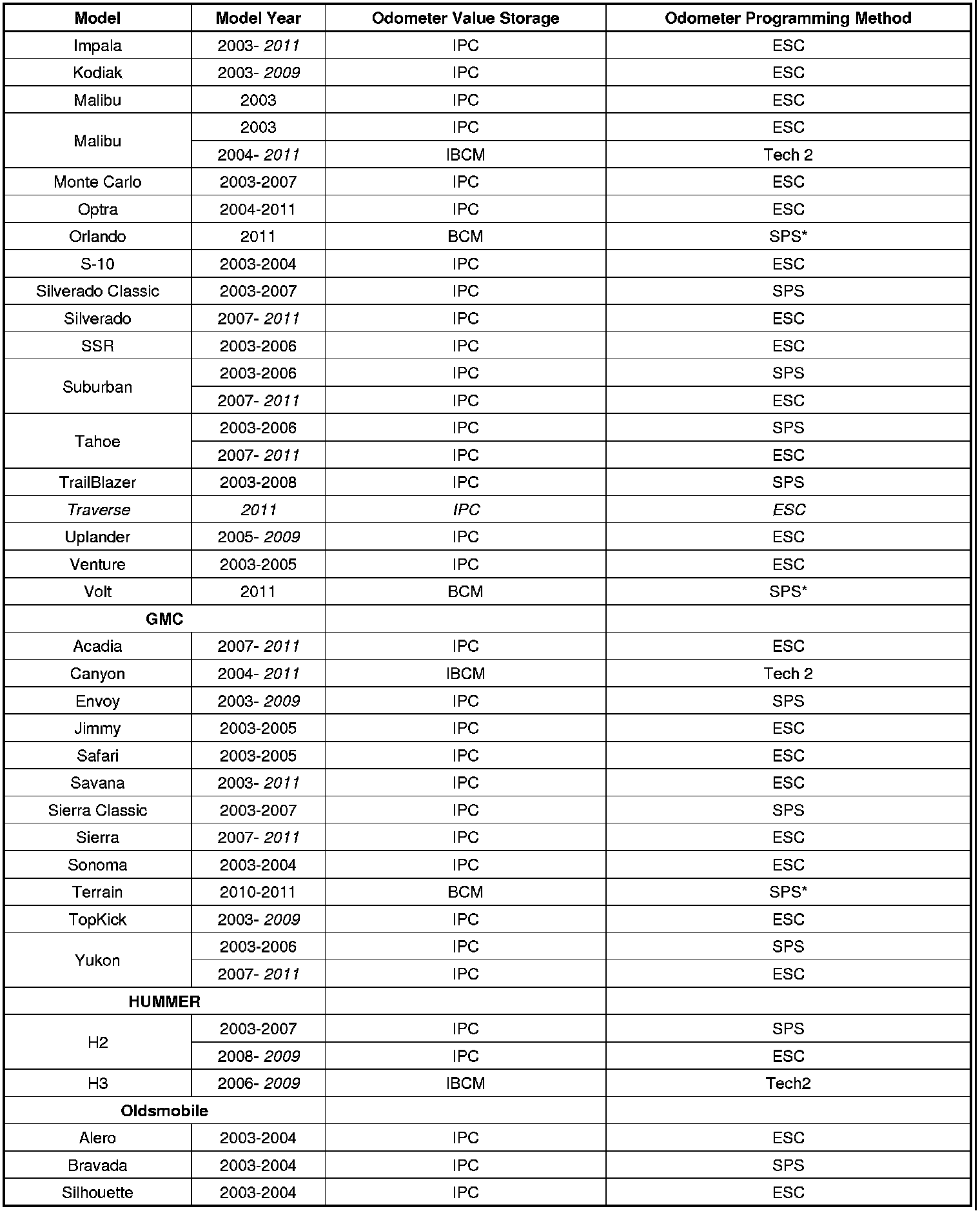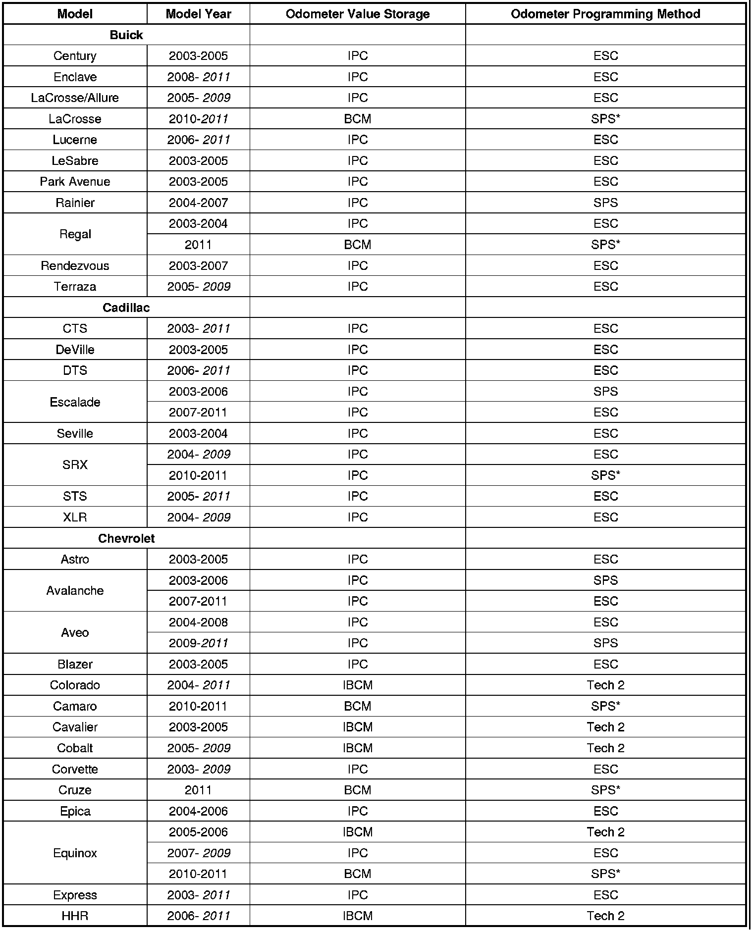 The purpose of this bulletin is to provide a reference guide to help identify which season odometer programming method to use after replacing the instrument panel cluster (IPC). The three season odometer programming methods in use today are listed below. In addition, this reference guide lists the component where the season odometer value is stored. The season odometer value may be stored in the IPC, the driver information center (DIC) or the integrated body control module (IBCM), also commonly called a body control module (BCM).