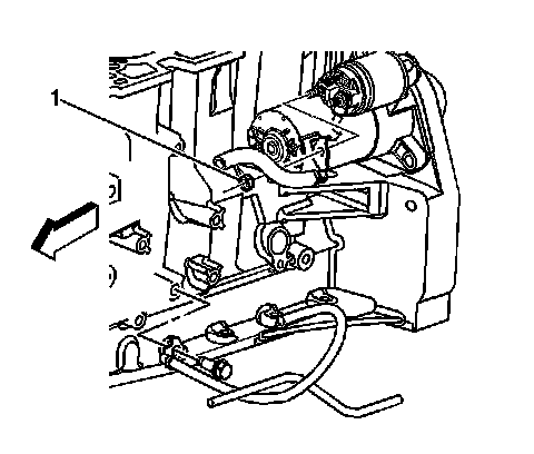 3. Connect the positive battery cable to the starter solenoid and secure the cable with a nut (1).