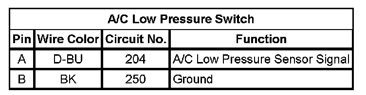 A/C Low Pressure Switch