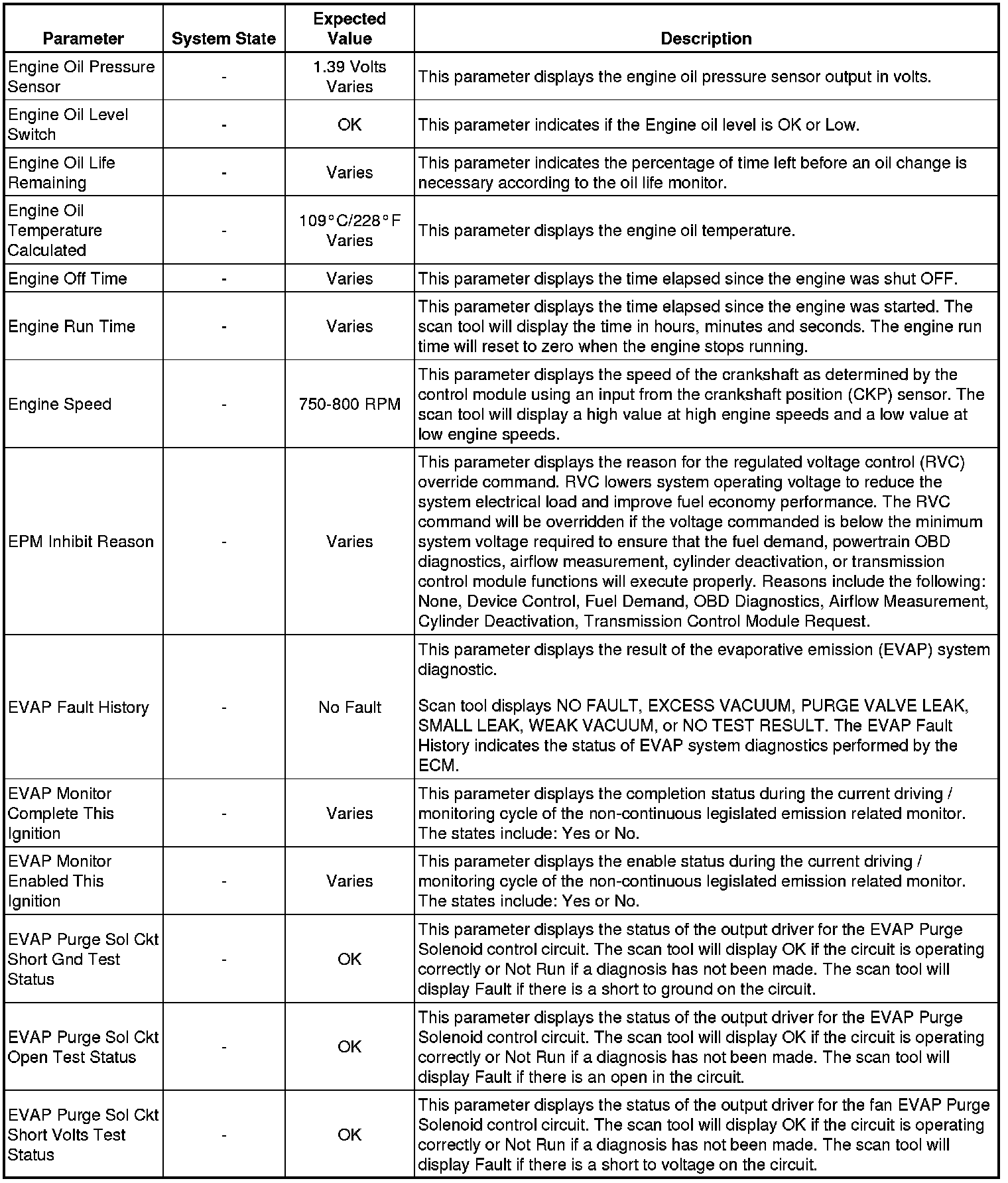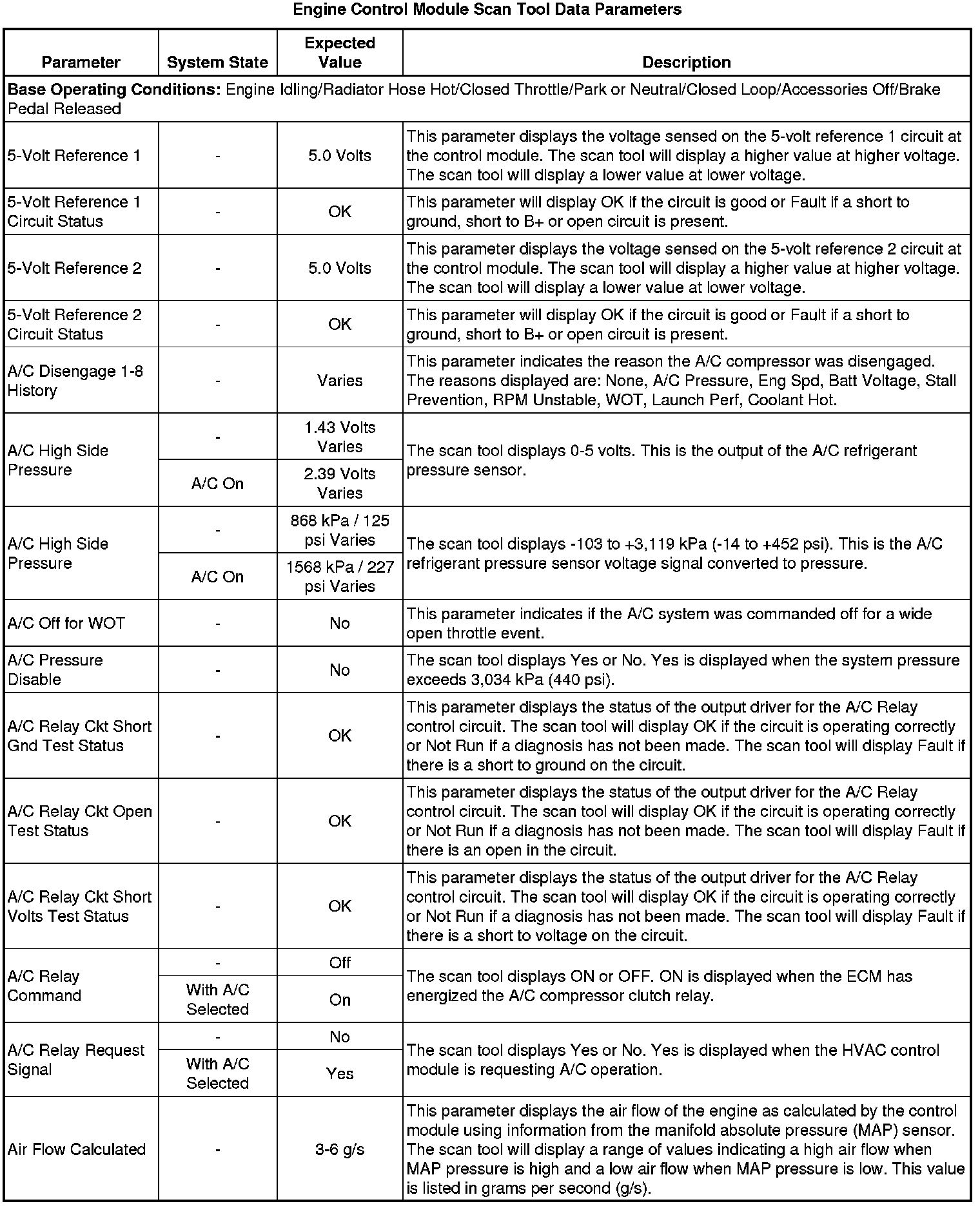 The Engine Control Module Scan Tool Data List contains all engine-related parameters that are available on the scan tool. The list is arranged in alphabetical order. A given parameter may appear in any one of the data lists, and in some cases may appear more than once, or in more than one data list in order to group certain related parameters together.