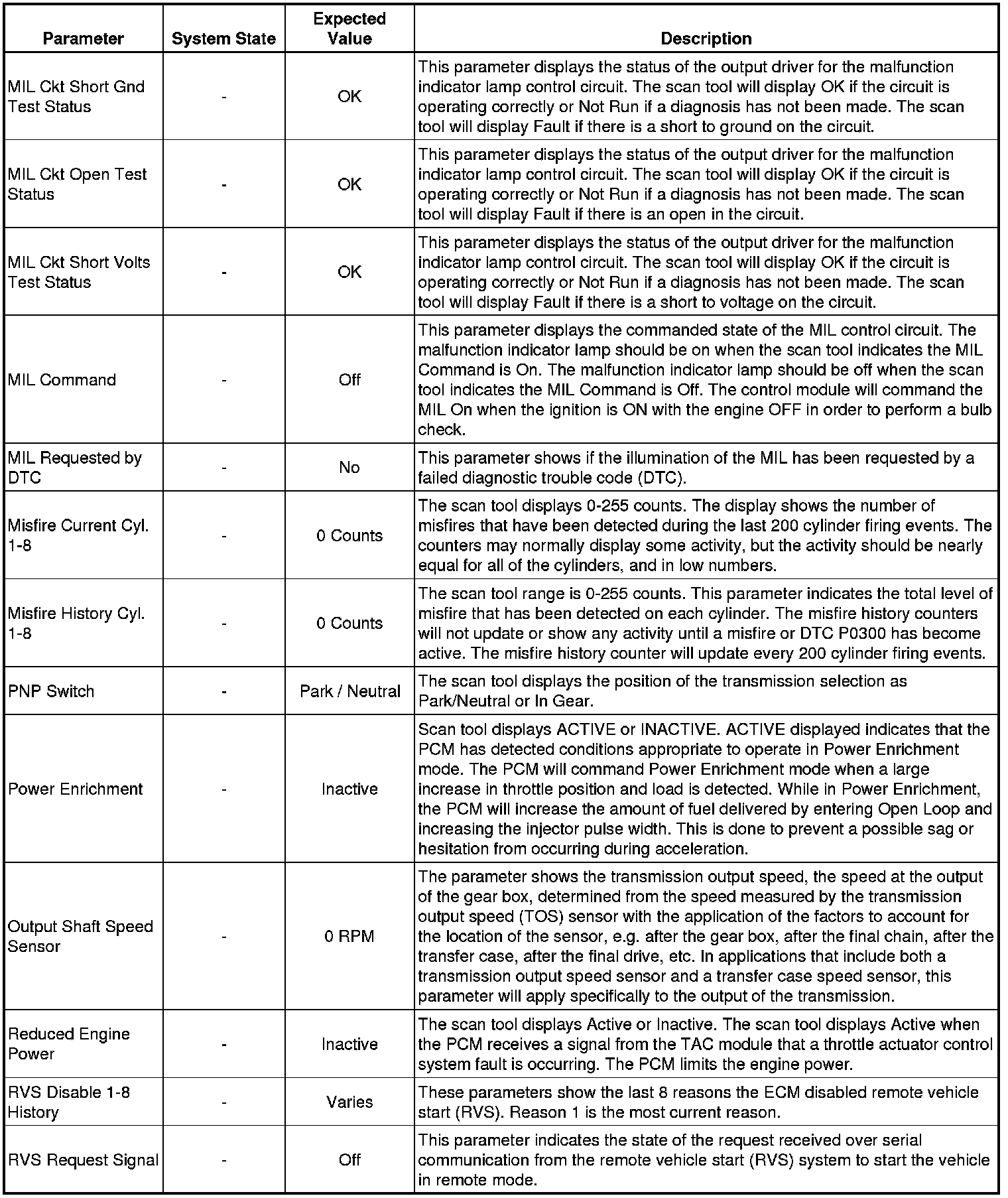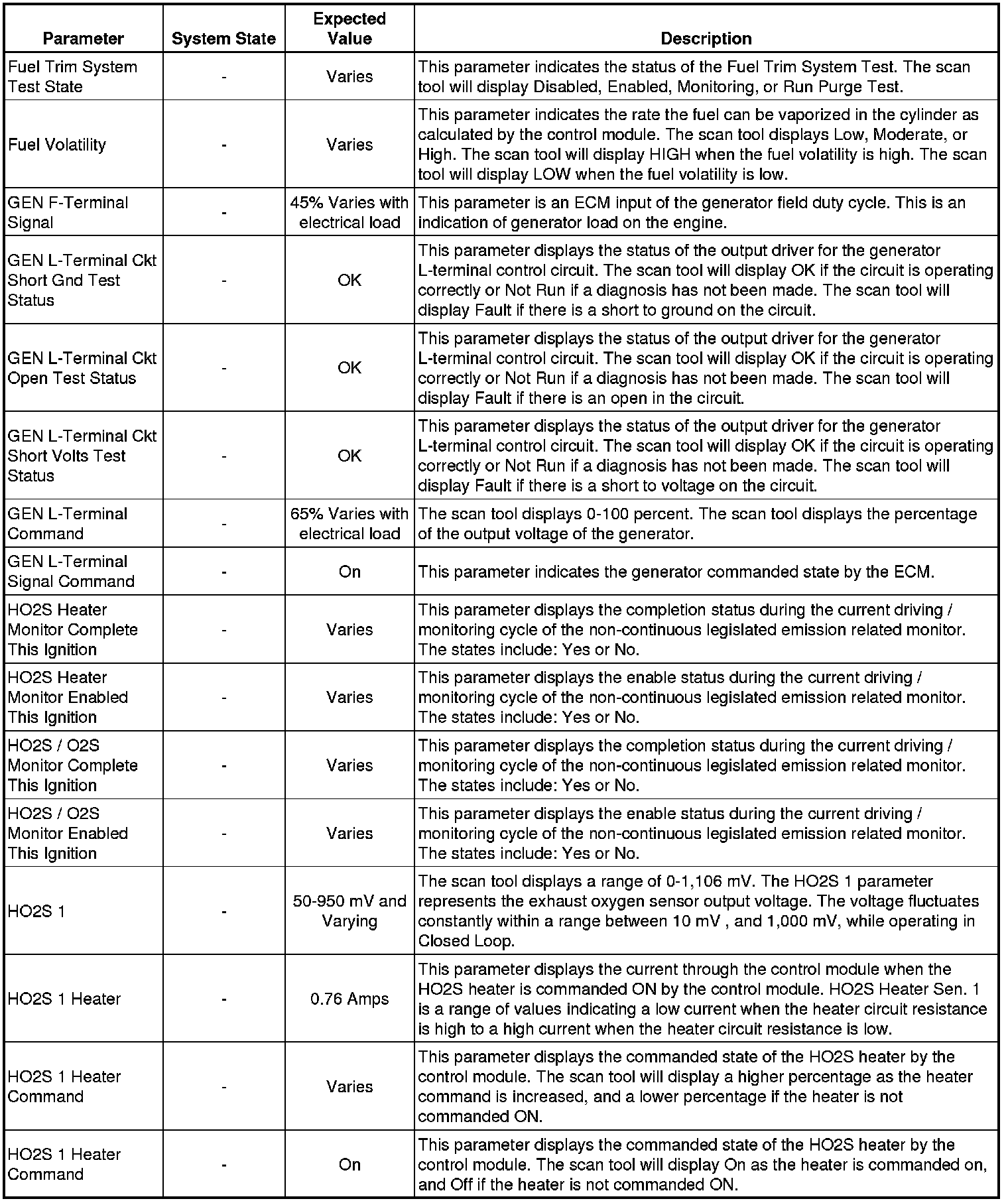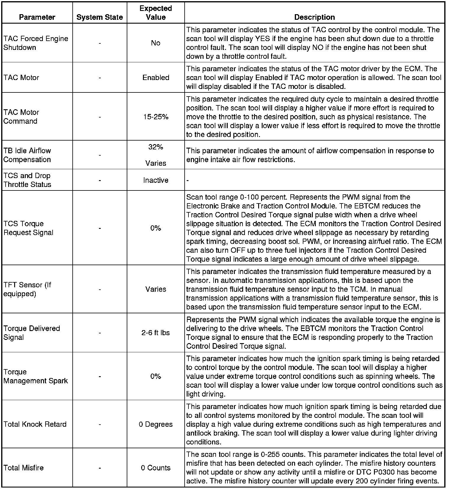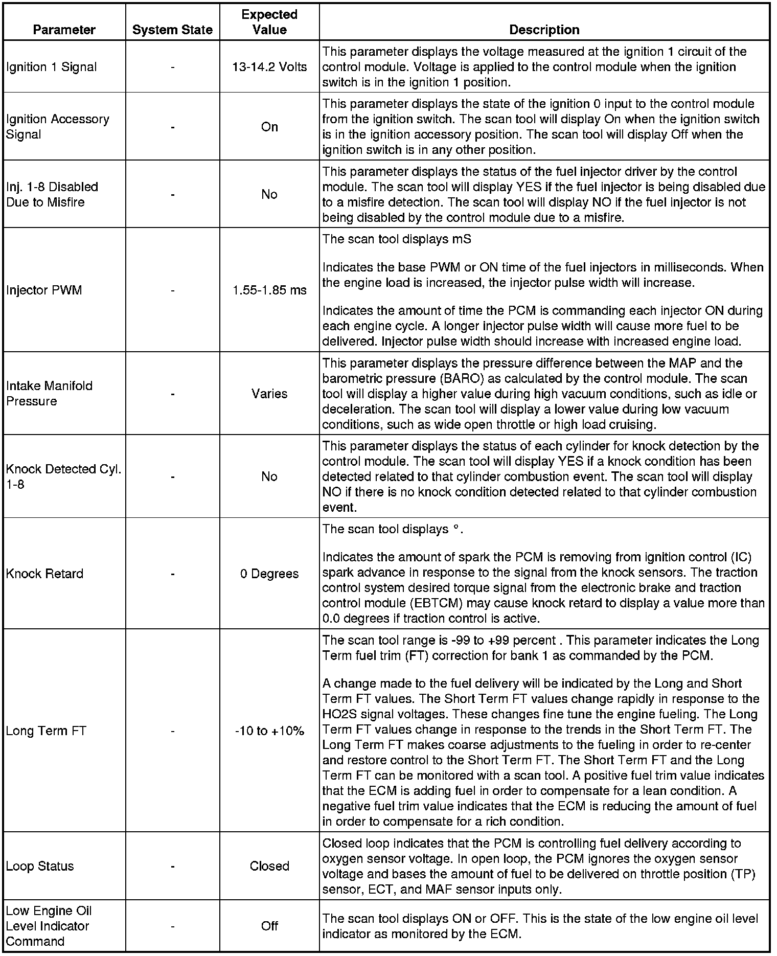 Only the parameters listed below are referenced in this service manual for use in diagnosis. If all values are within the typical range described below, refer to Symptoms - Engine Controls (Symptoms - Engine Controls) for diagnosis.