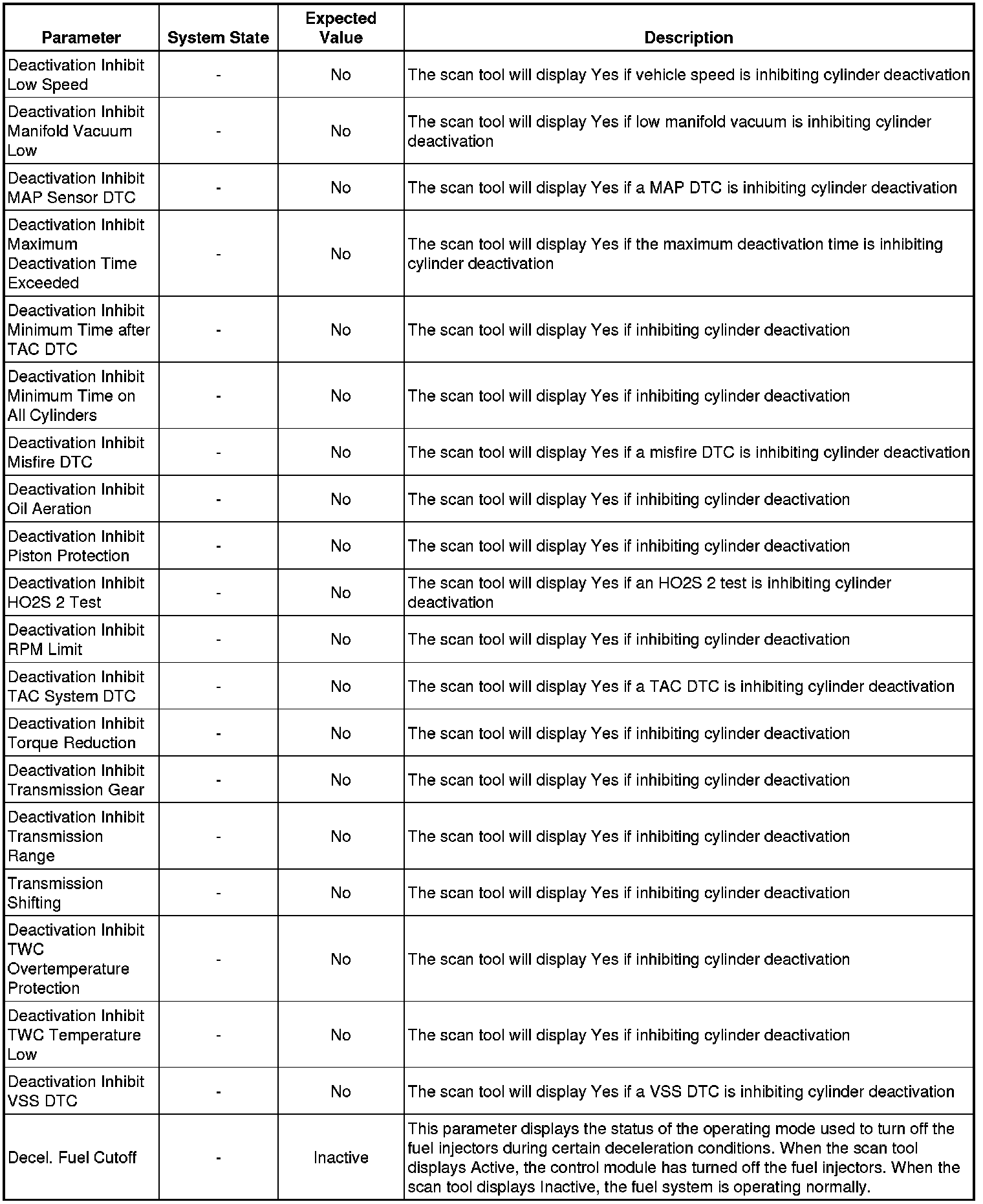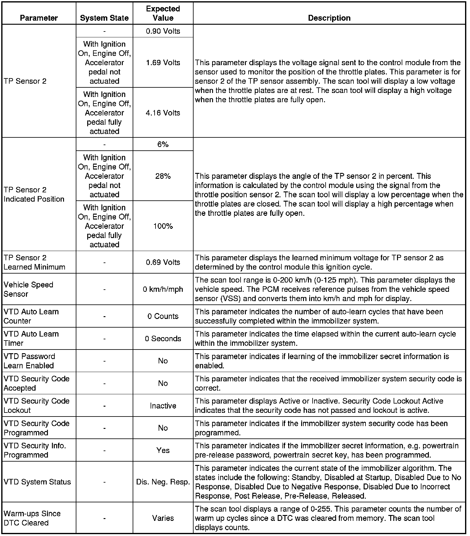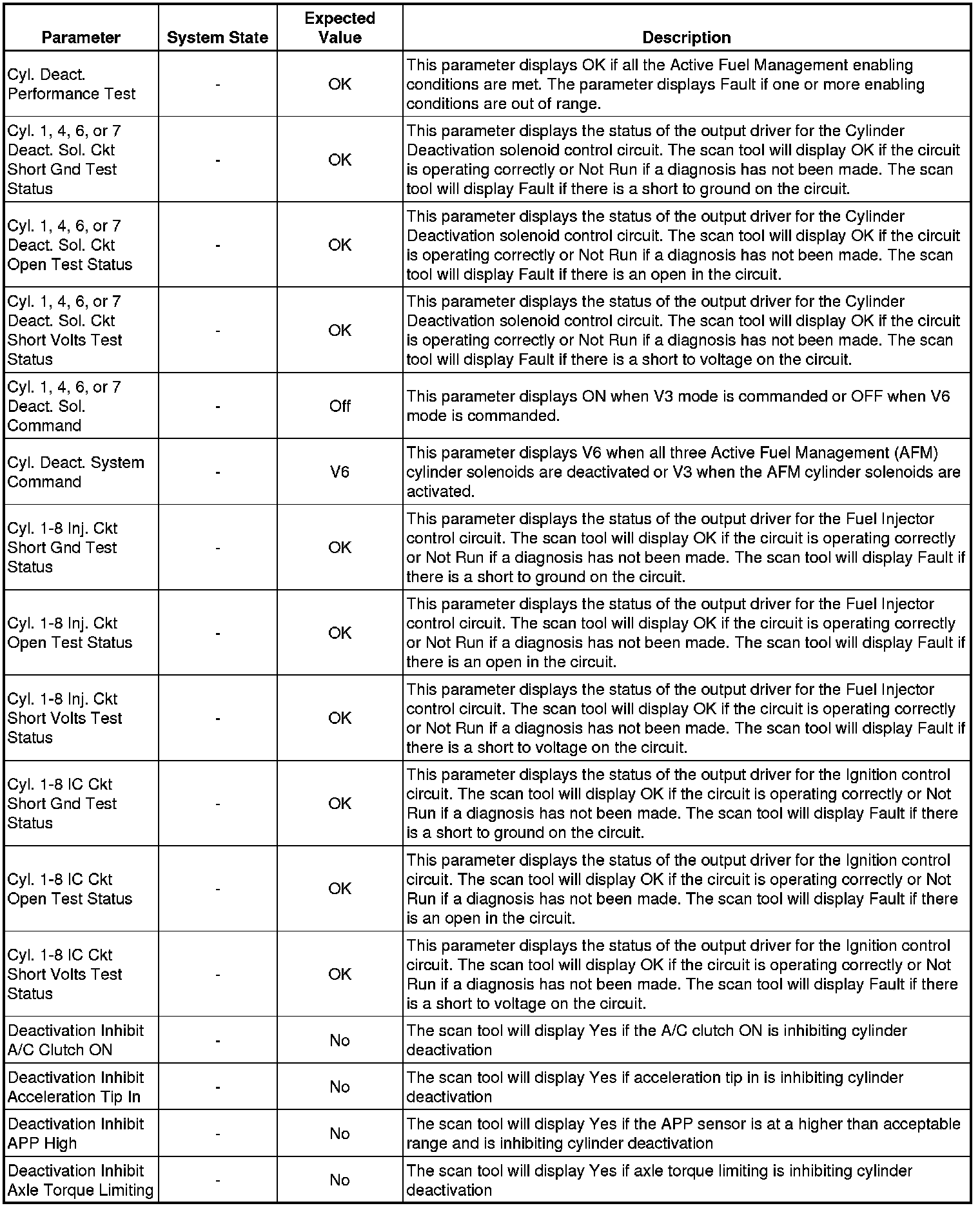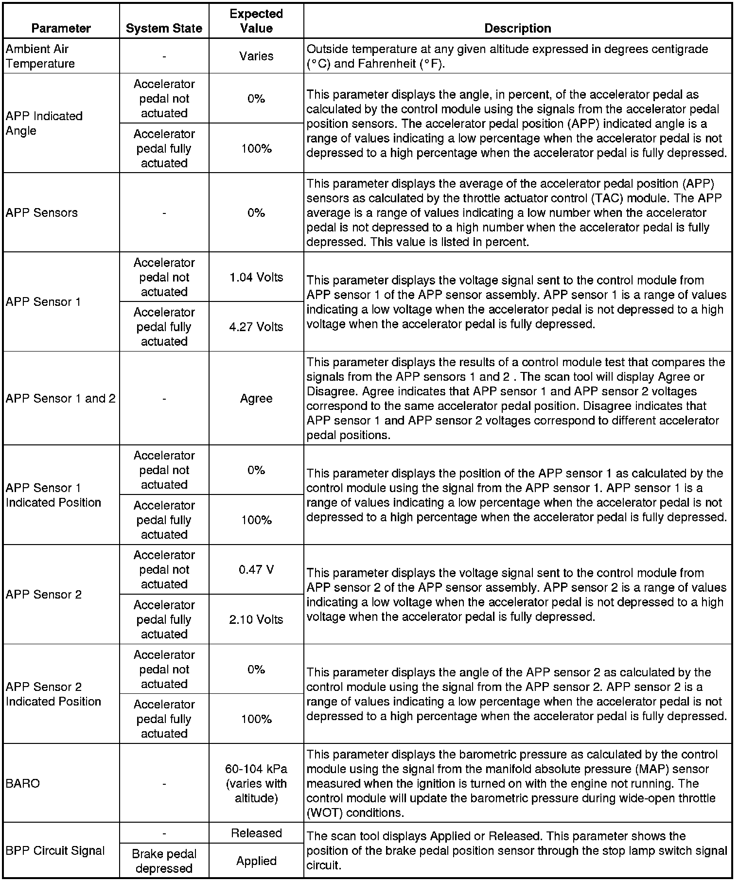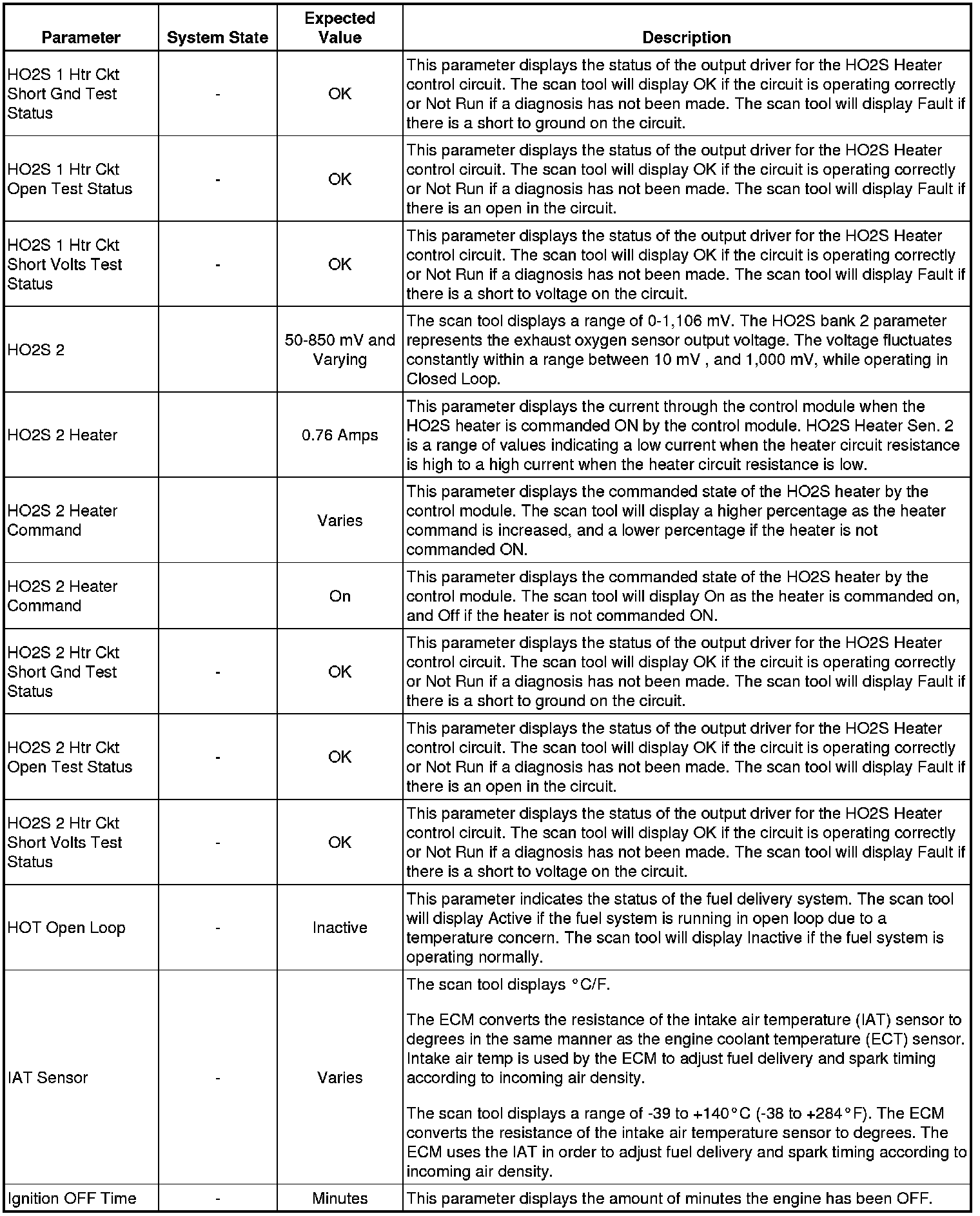 Only the parameters listed below are referenced in this service manual for use in diagnosis. If all values are within the typical range described below, refer to Symptoms - Engine Controls (Symptoms - Engine Controls) for diagnosis.
