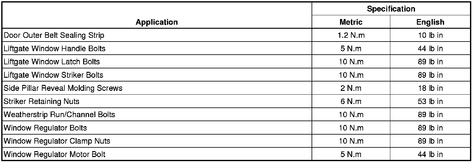 Fastener Tightening Specifications