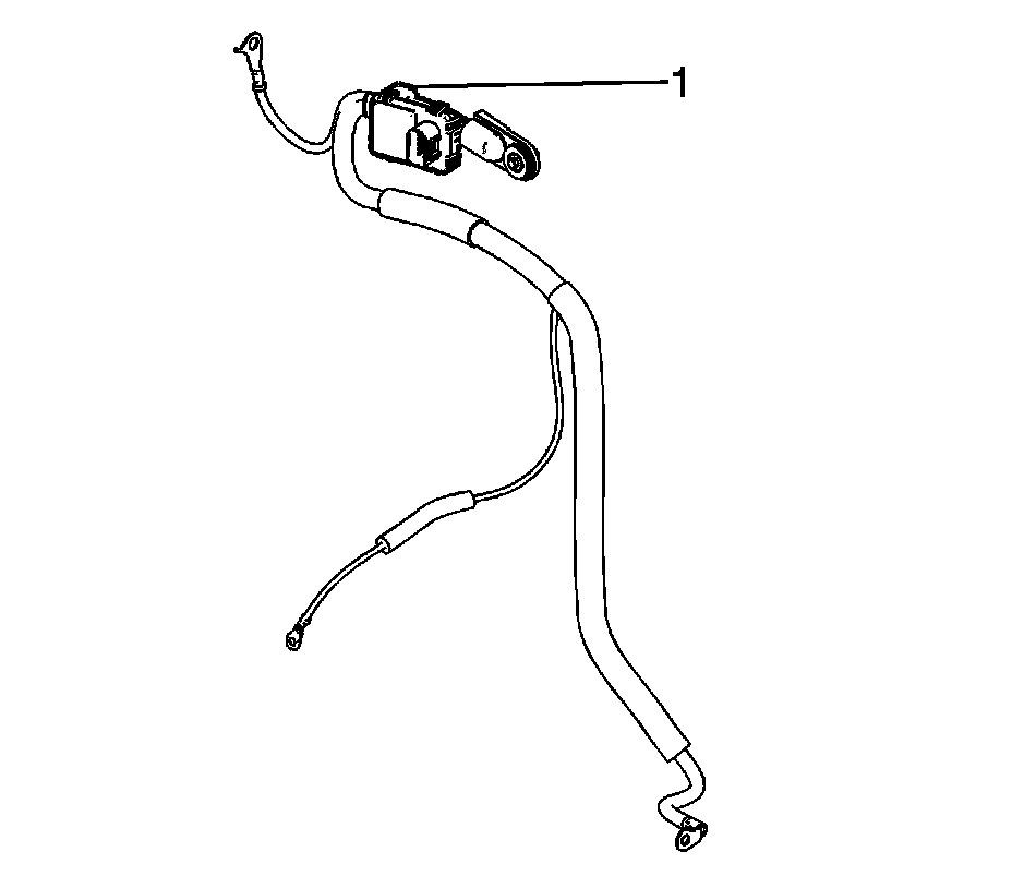 2. Slide the NEW generator battery current sensor (1) up onto the negative battery cable and insert the tab under the negative battery cable terminal cover.