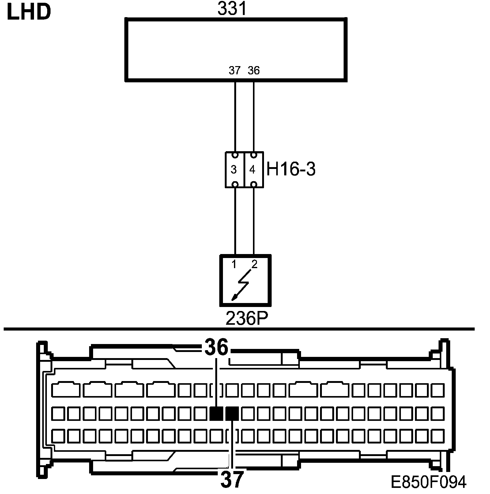 B0059 Voltage on pin 37 in the control module exceeds 4.1 ± 0.15 V or falls below 1.0 ± 0.15 V for 2 s.