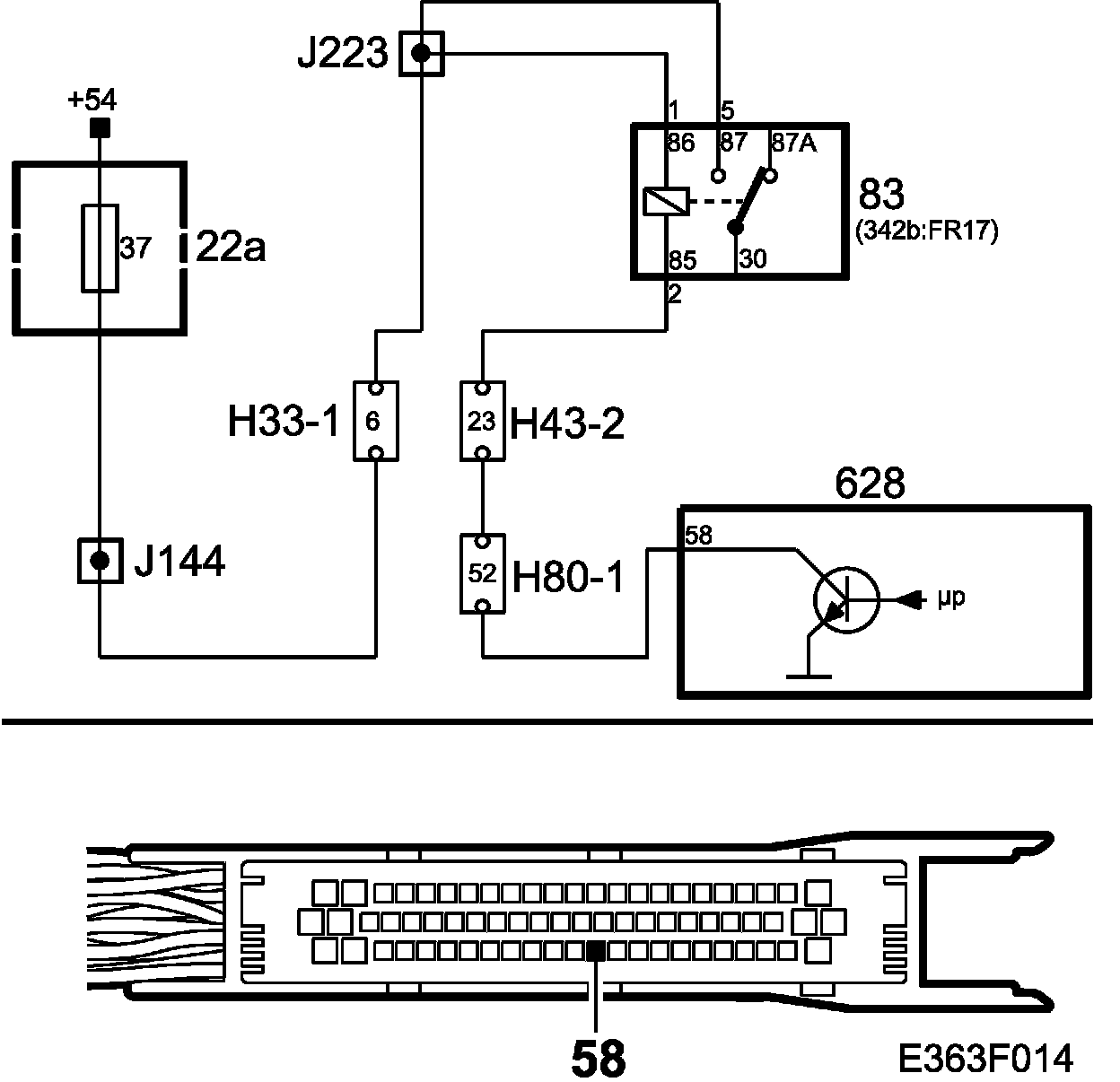 - Short circuit to B+.