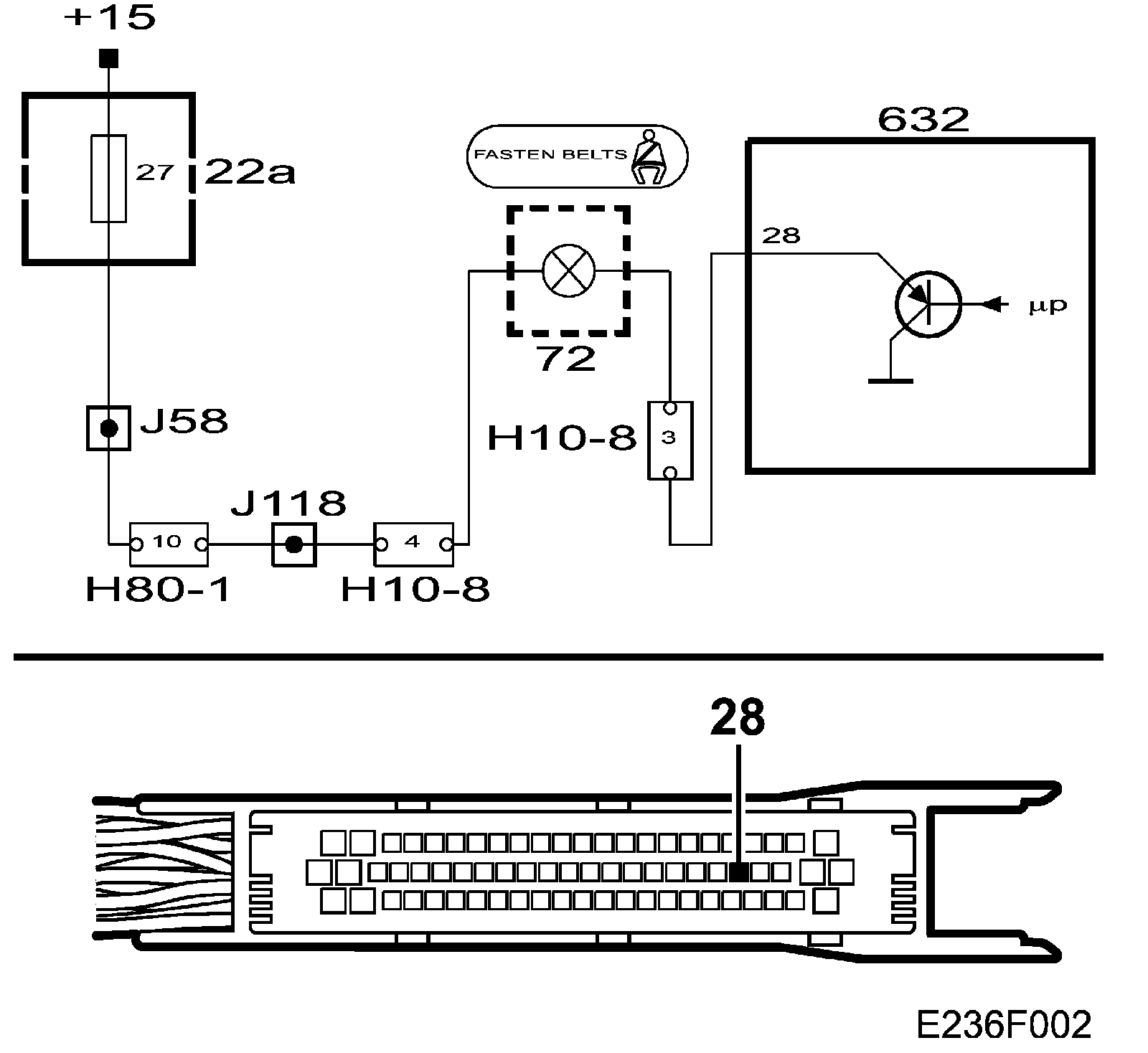 A short-circuit to B+ gives the symptom that the seat belt warning lamp does not light.