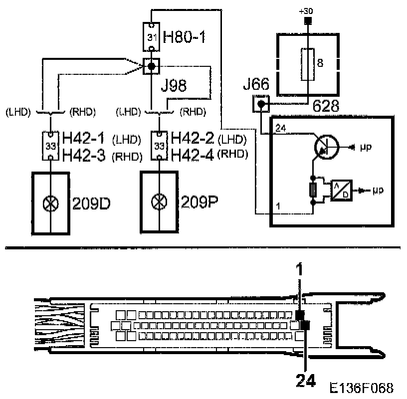 If a lamp with too high a rating is fitted, diagnostic trouble code B1240 can be generated.