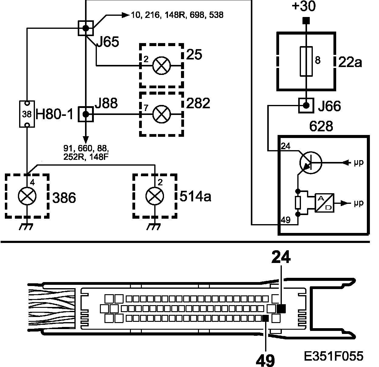 If a lamp with too high a rating is fitted, diagnostic trouble code B1735 can be generated.