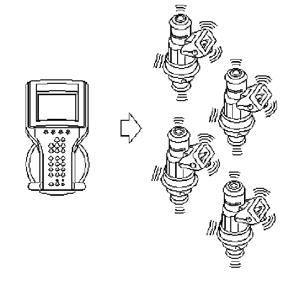 ^ Activate all injectors, one at a time, to identify the defective circuit. Listen for the sound made by the injectors.