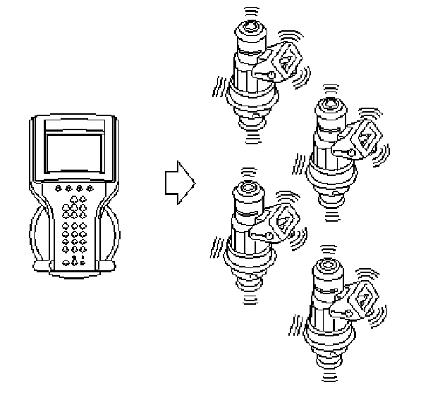 ^ Activate all injectors, one at a time, to identify the defective circuit. Listen for the sound made by the injectors.