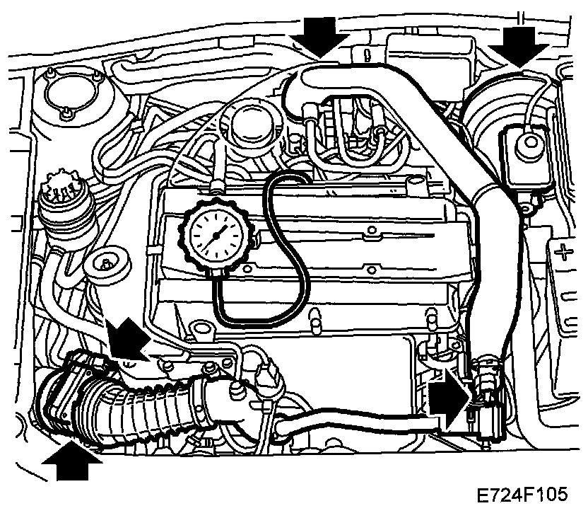 Fault diagnosis first determines if the pressure sensors indicate about the same value with the ignition ON, as the mass air flow sensor is then compared with the intake air pressure. If the pressure sensors are OK but the mass air flow sensor value is not correct, then air leaks between the compressor and the throttle are checked for first and then the mass air flow sensor is changed.