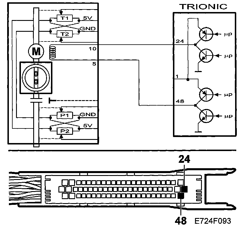 ^ Fuel shut-off. Main relay turned off. Throttle control in limp-home mode. Limphome solenoid will activate 5 times in succession each time the ignition is turned on until the fault is rectified and the trouble codes cleared.