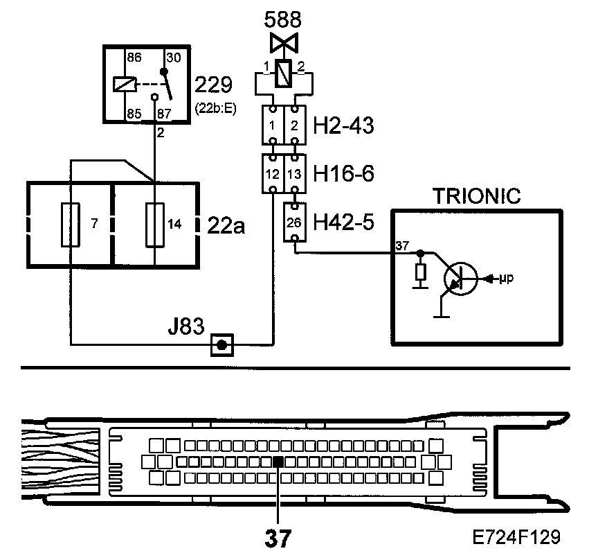^ Engine running. Main relay voltage 10 V - 16 V. Output not active.