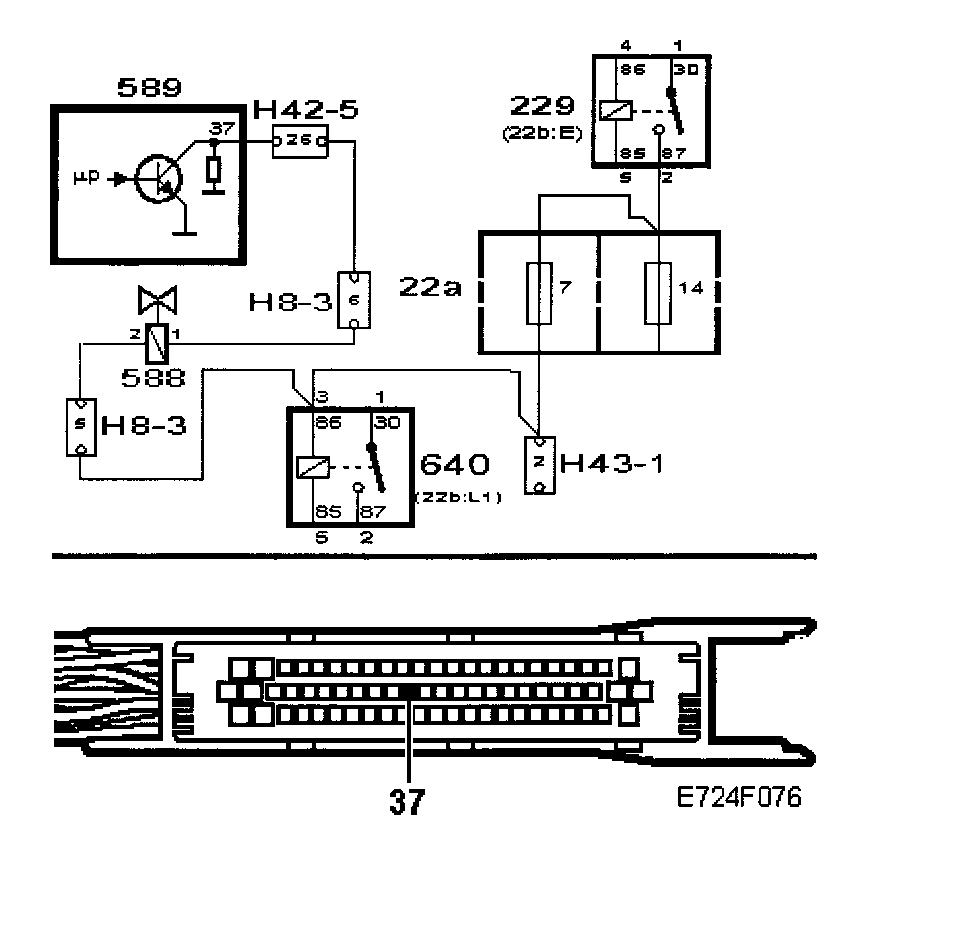 The lead from pin 37 of the control module to pin 2 of the female connector is faulty.