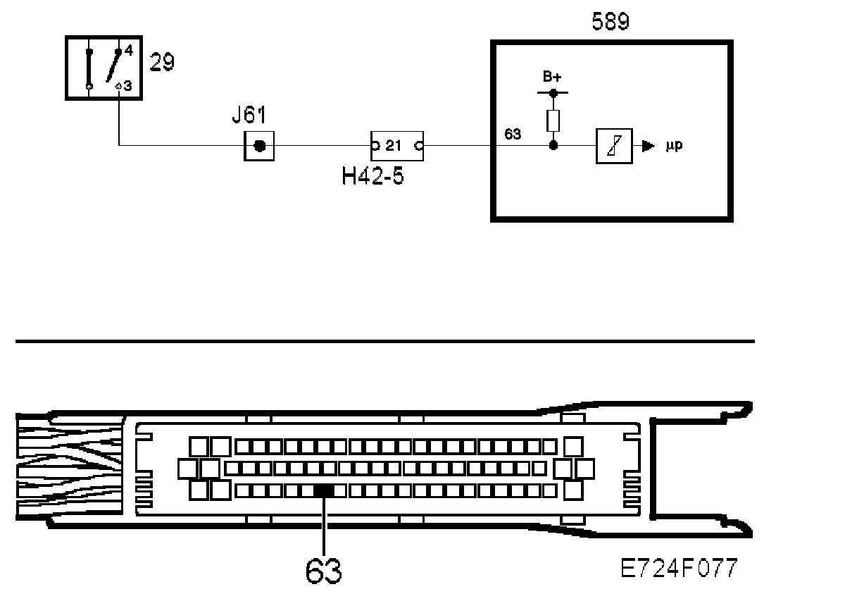 The lead from crimped connection J61 to control module pin 63 is faulty.