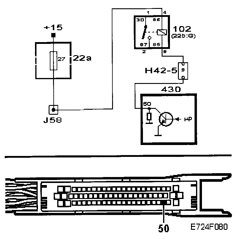The lead from crimp connection J58 to pin 4 (86) of the relay holder is faulty.