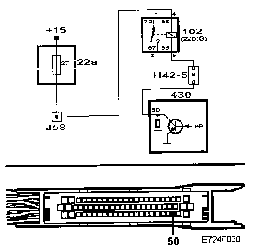 ^ Connect test lamp 86 11 857 to pin 4 (86) of the relay holder and a good grounding point.