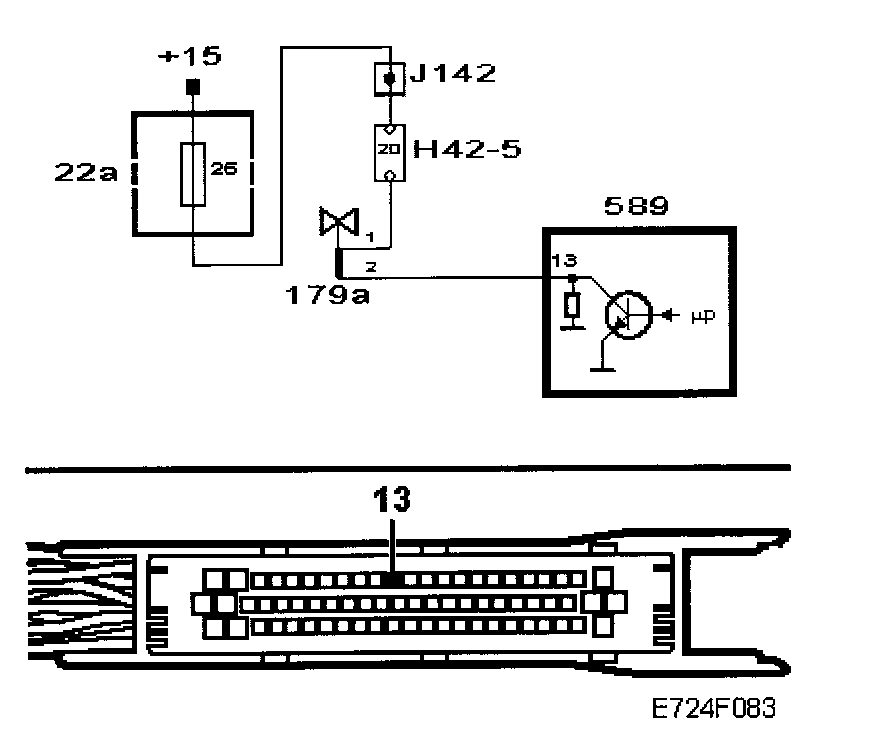 The lead from pin 13 of the control module to pin 2 of the female connector is faulty.