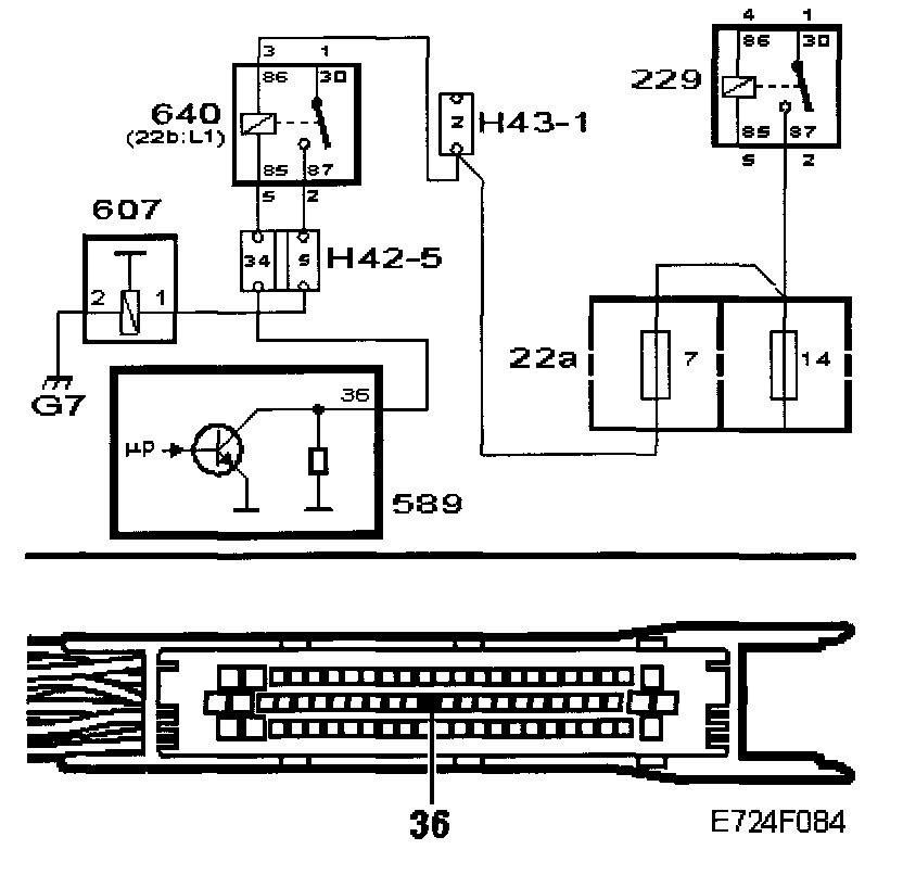 The lead from fuse 7 to pin 3 (86) of the relay holder is faulty.