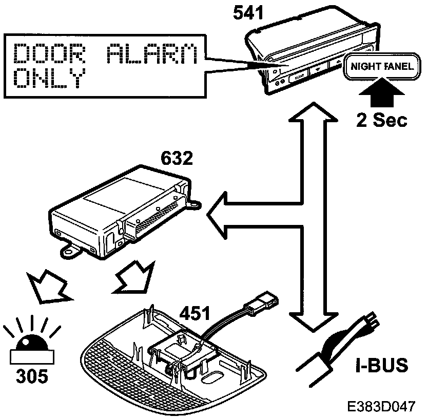 Disconnection is confirmed with the message DOOR ALARM ONLY on SID. The car must then be locked within 3 minutes if the disconnection is to apply when the alarm is armed.