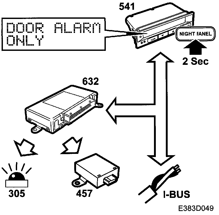 Disconnection is confirmed with the message DOOR ALARM ONLY on SID. The car must then be locked within 3 minutes if the disconnection is to apply when the alarm is armed.